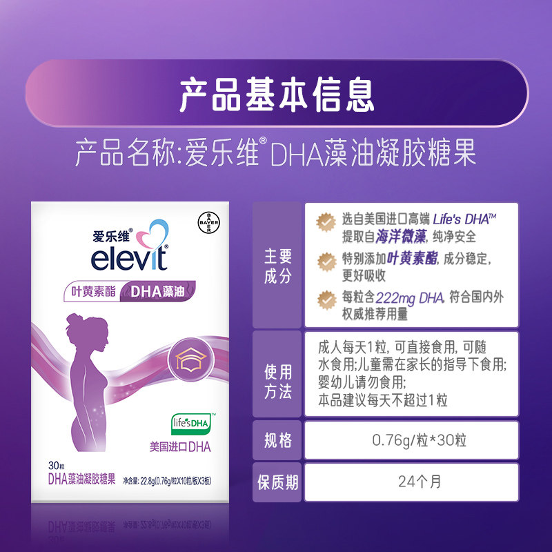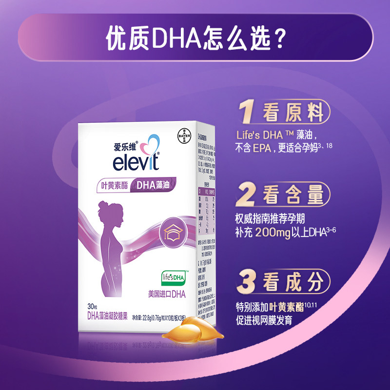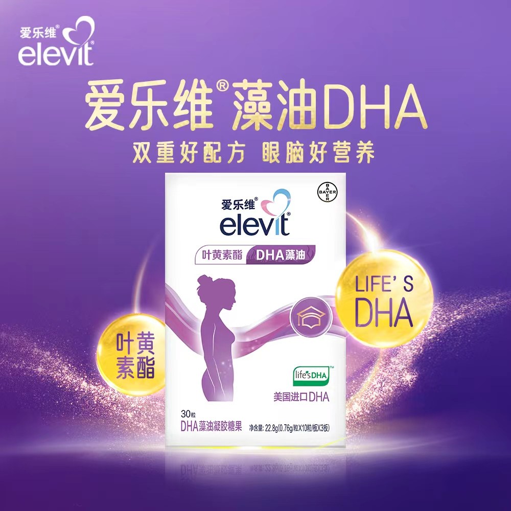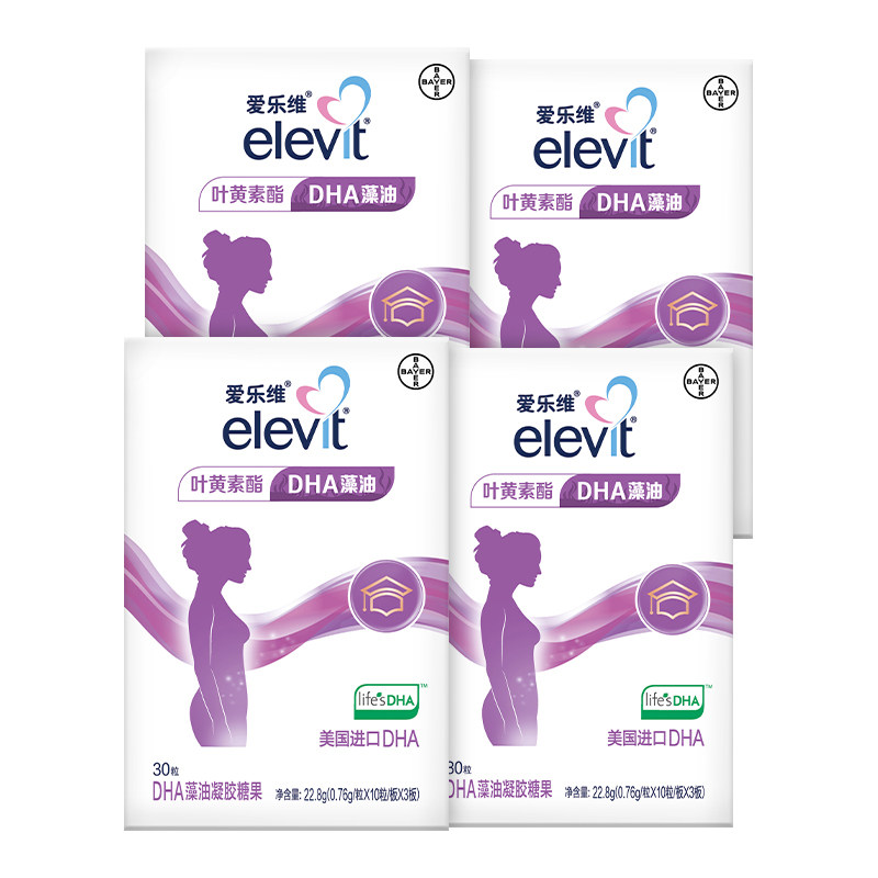拜耳elevit爱乐维孕妇DHA藻油凝胶糖果30粒*4盒 叶黄素进口DHA