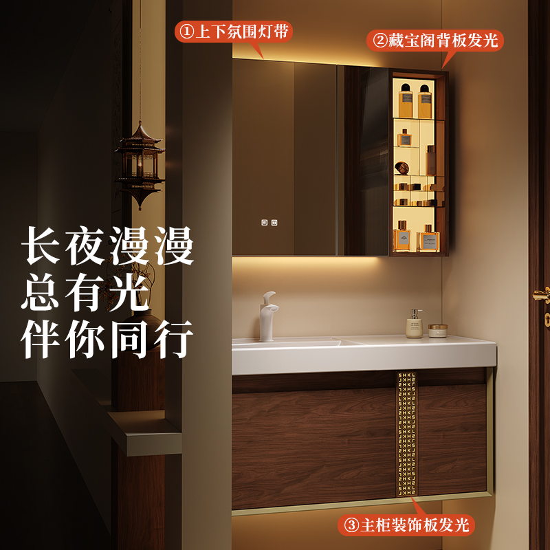【国家补贴15%】心海伽蓝新中式浴室柜陶瓷一体盆卫生间卫浴盆柜