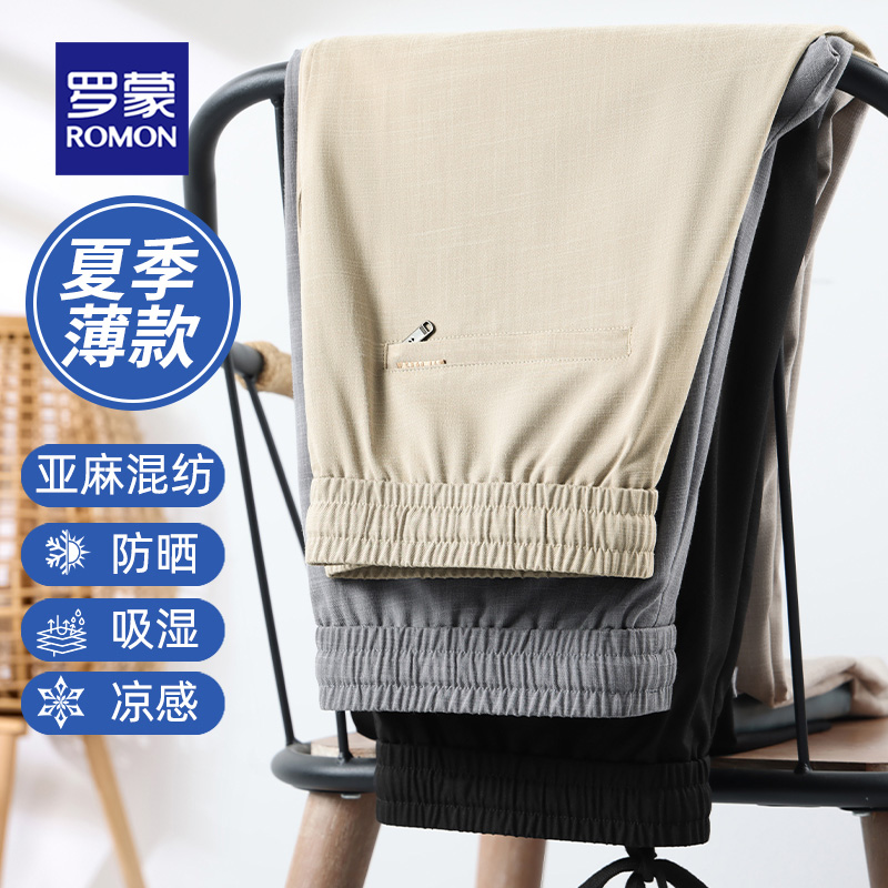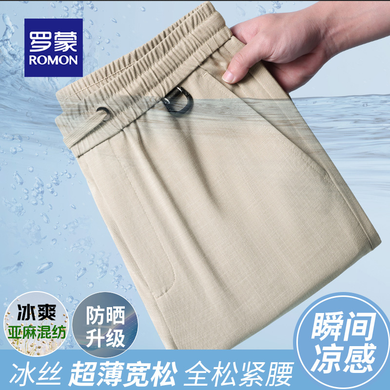罗蒙冰丝亚麻休闲裤男夏季新款
