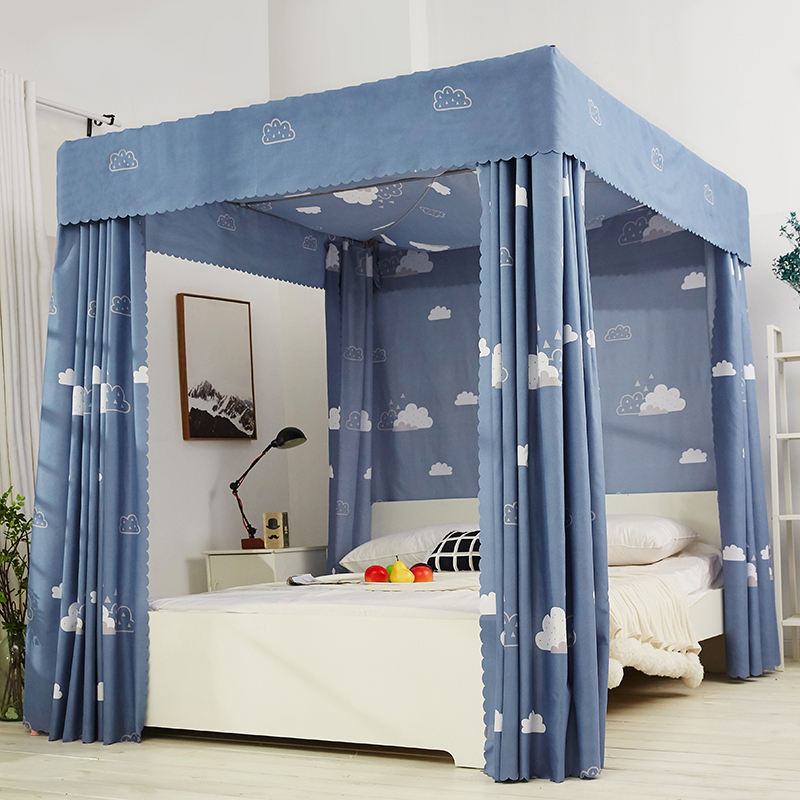 床帘蚊帐遮光家用卧室一体式带支架加密加厚宫廷落地床幔防尘顶布
