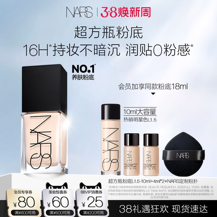 【38立即抢购】NARS超方瓶粉底 轻透持妆不卡粉遮瑕不暗沉
