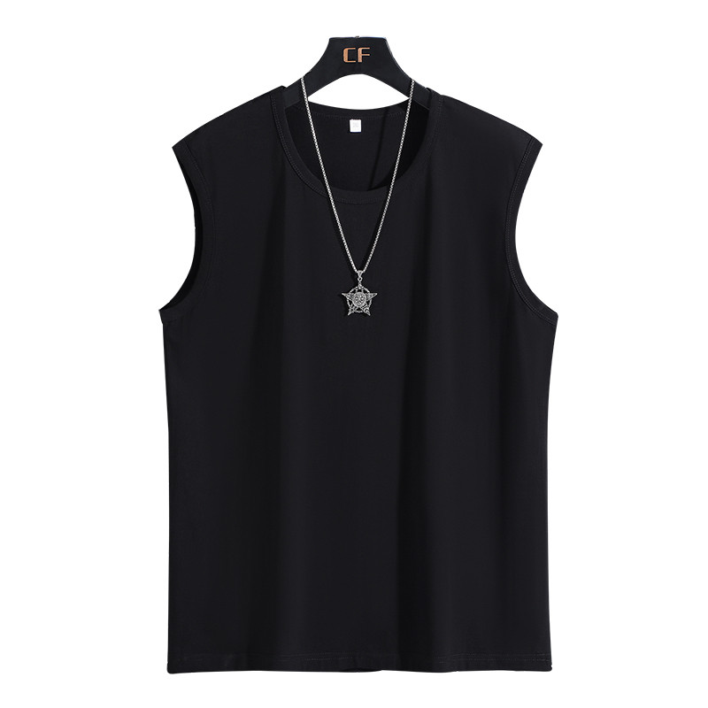 运动背心男加肥加大码大号纯棉圆领宽肩胖子肥佬宽松健身无袖T恤