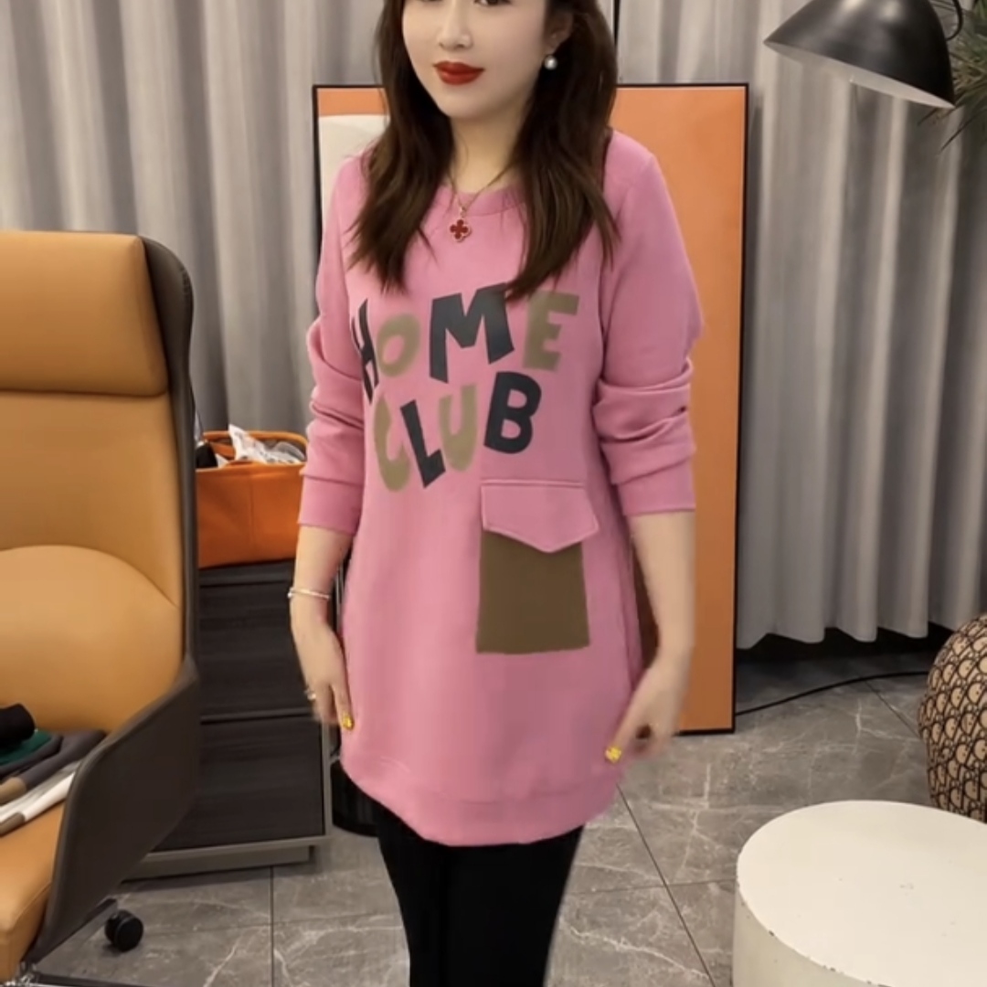 秋冬新款休闲风宽松显瘦中长款时尚字母带兜加绒保暖套头卫衣女