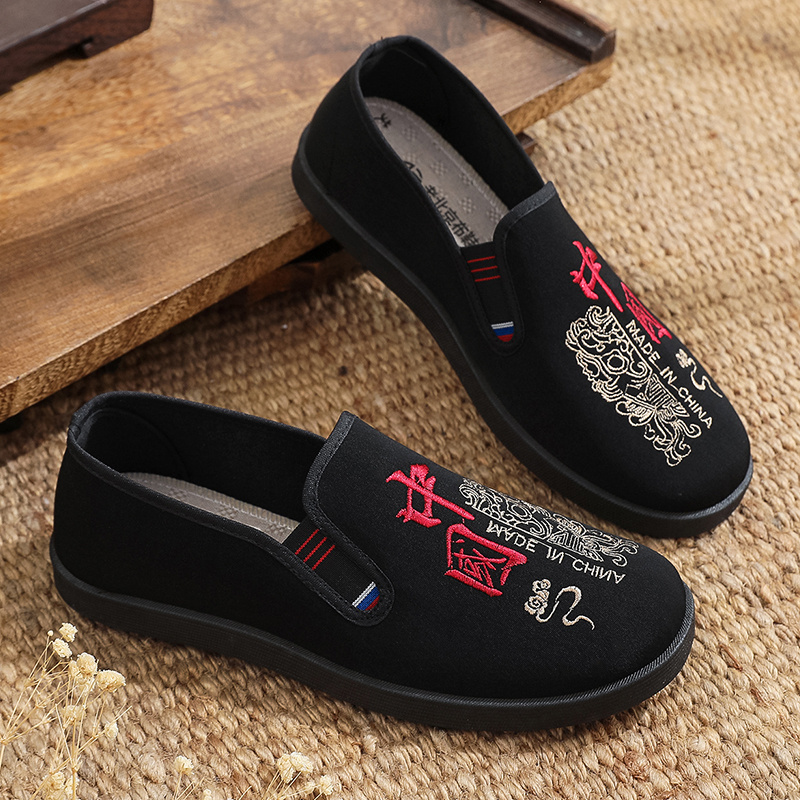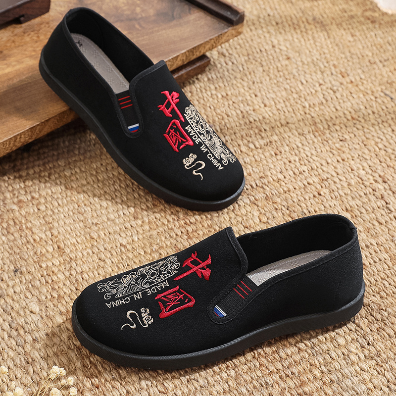 艾草防臭老北京布鞋男鞋中老年爸爸鞋绣花社会鞋一脚蹬休闲鞋单鞋
