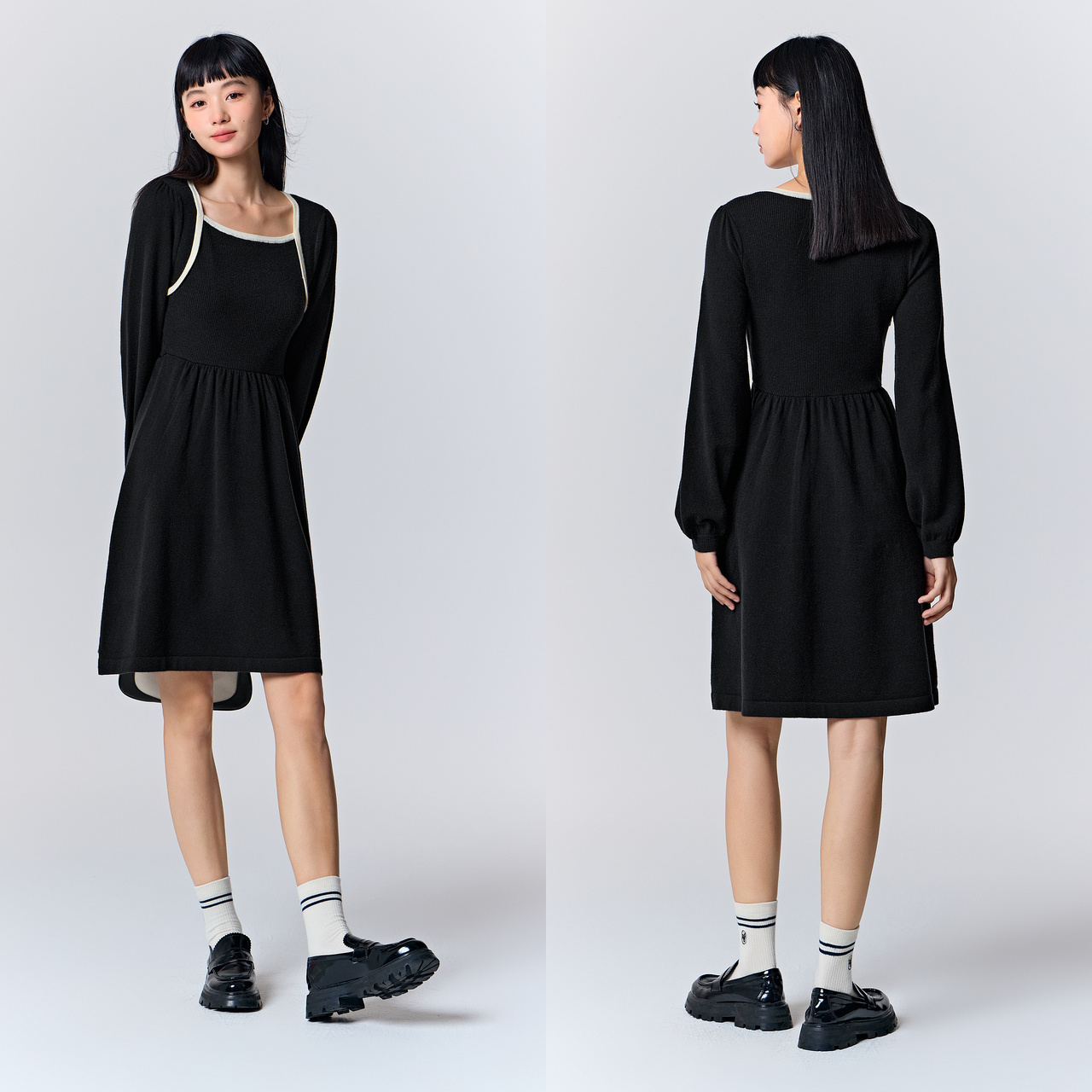 森马连衣裙女撞色方领针织裙法式优雅2023新款冬季修身打底裙气质