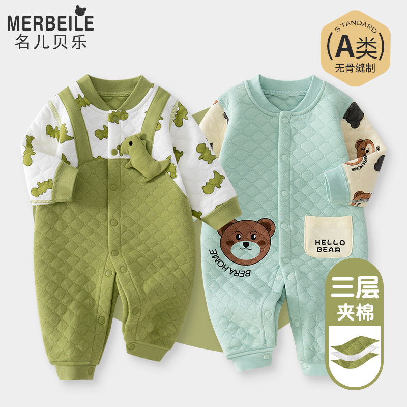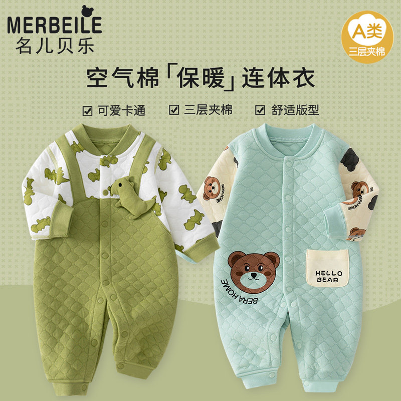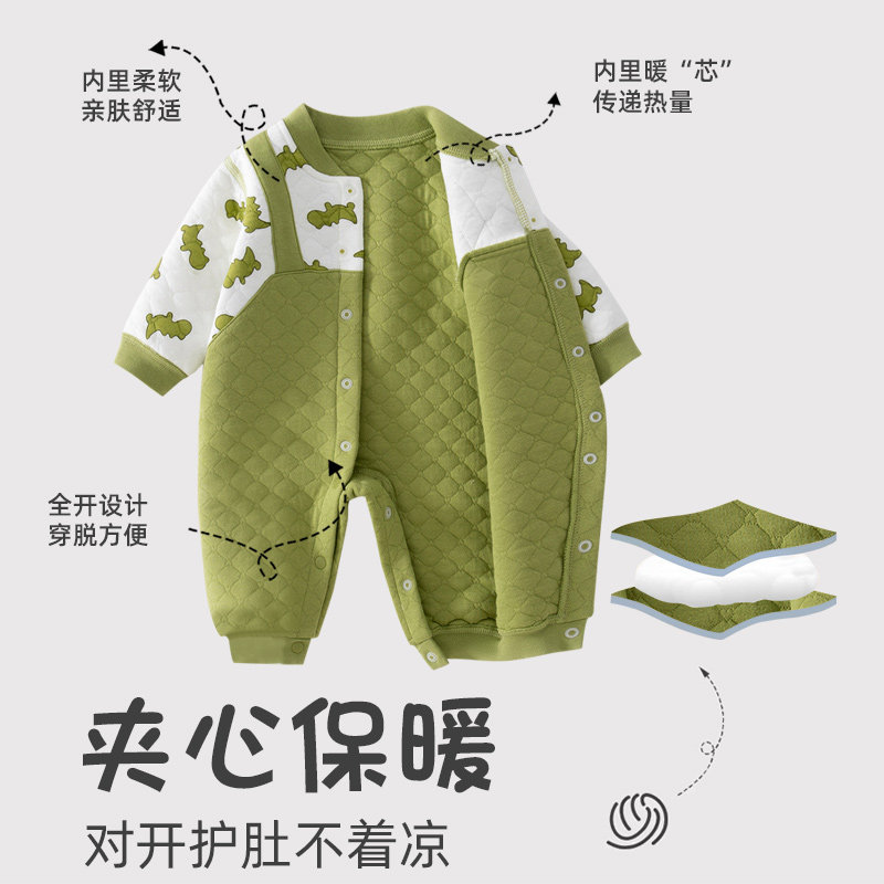 秋冬季宝宝连体衣婴儿护肚棉衣新生儿保暖月子服宝宝纯棉加厚哈衣