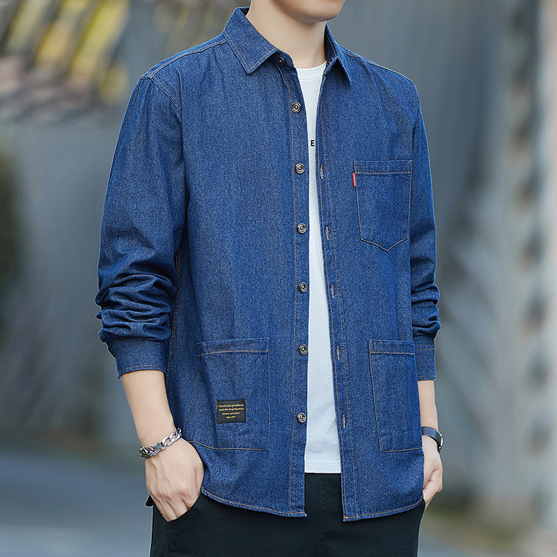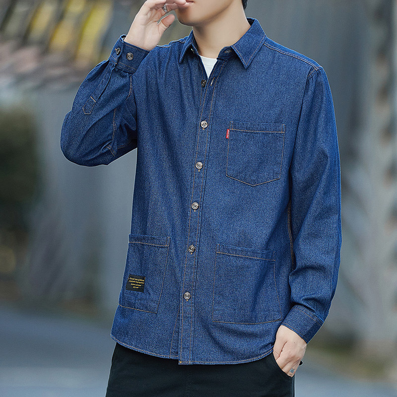 恒源祥纯棉牛仔衬衫男春季休闲软牛仔上衣宽松水洗长袖衬衣外套男