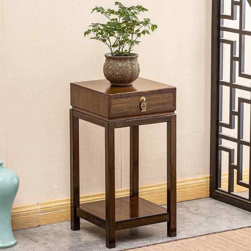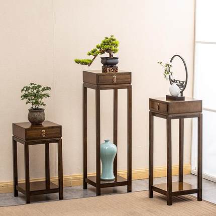 雅欧达新中式落地花架置物架实木客厅带抽款花台室内盆栽植物架子