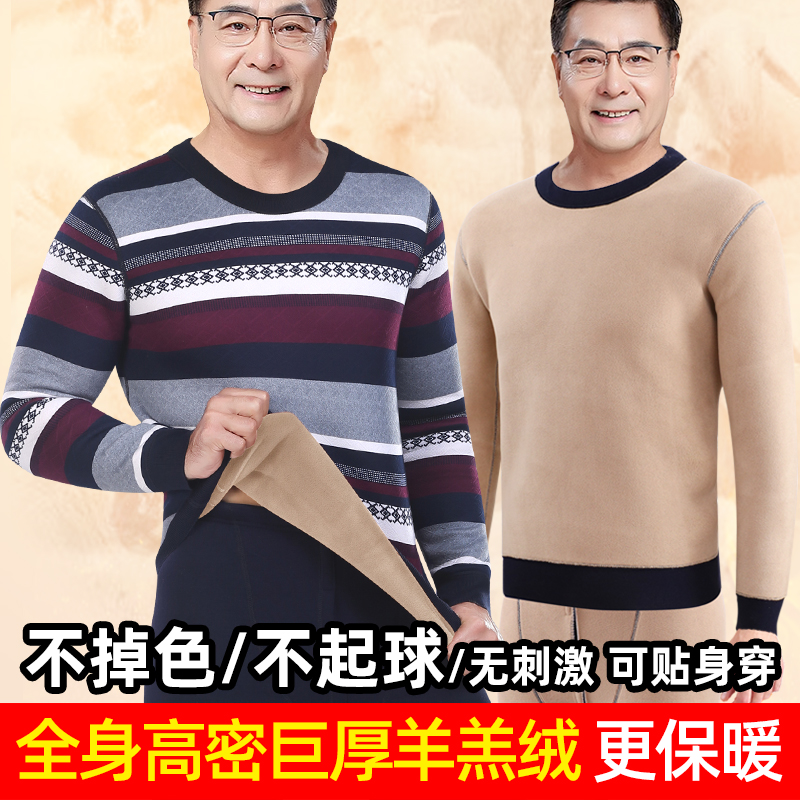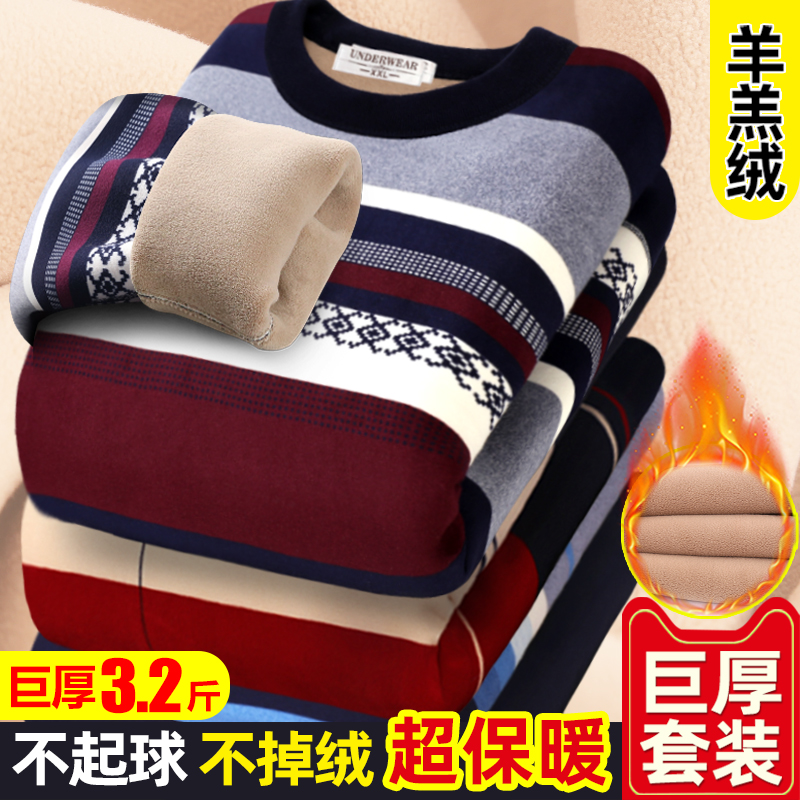 巨厚男士保暖内衣套装加绒加厚中老年爸爸全棉冬季抗寒保暖衣外穿