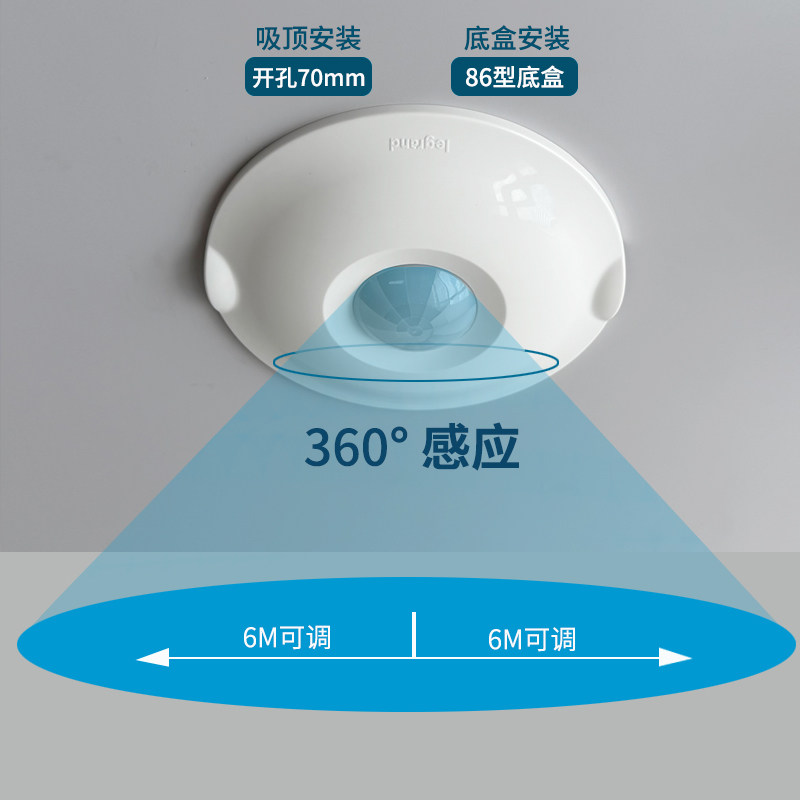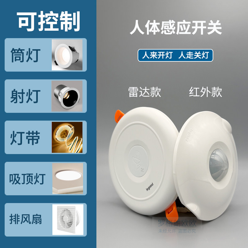 罗格朗吸顶式人体感应开关接近延时可调玄关走廊三线带集控DG03