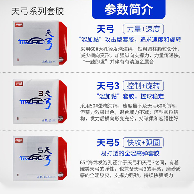 红双喜乒乓球拍胶皮反胶天弓系列涩性天弓5 3控制弧圈易打透高弹