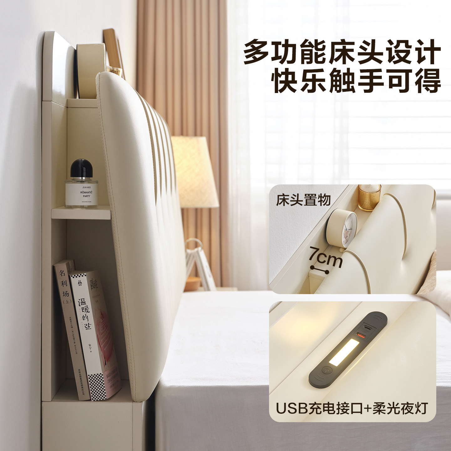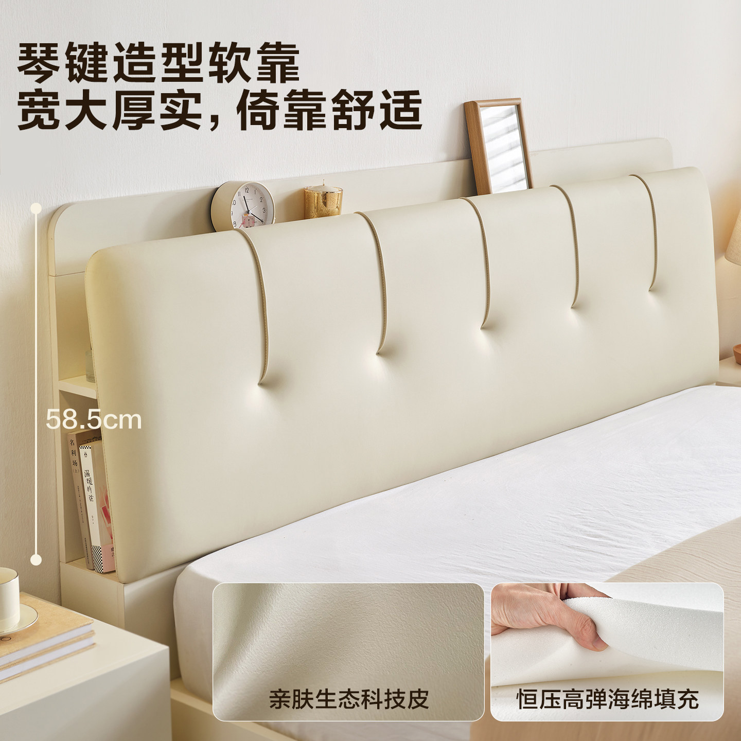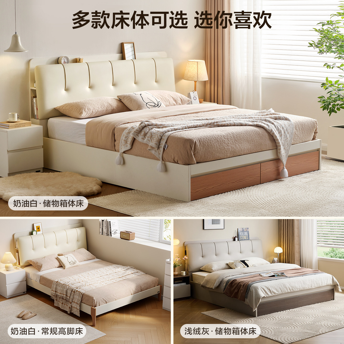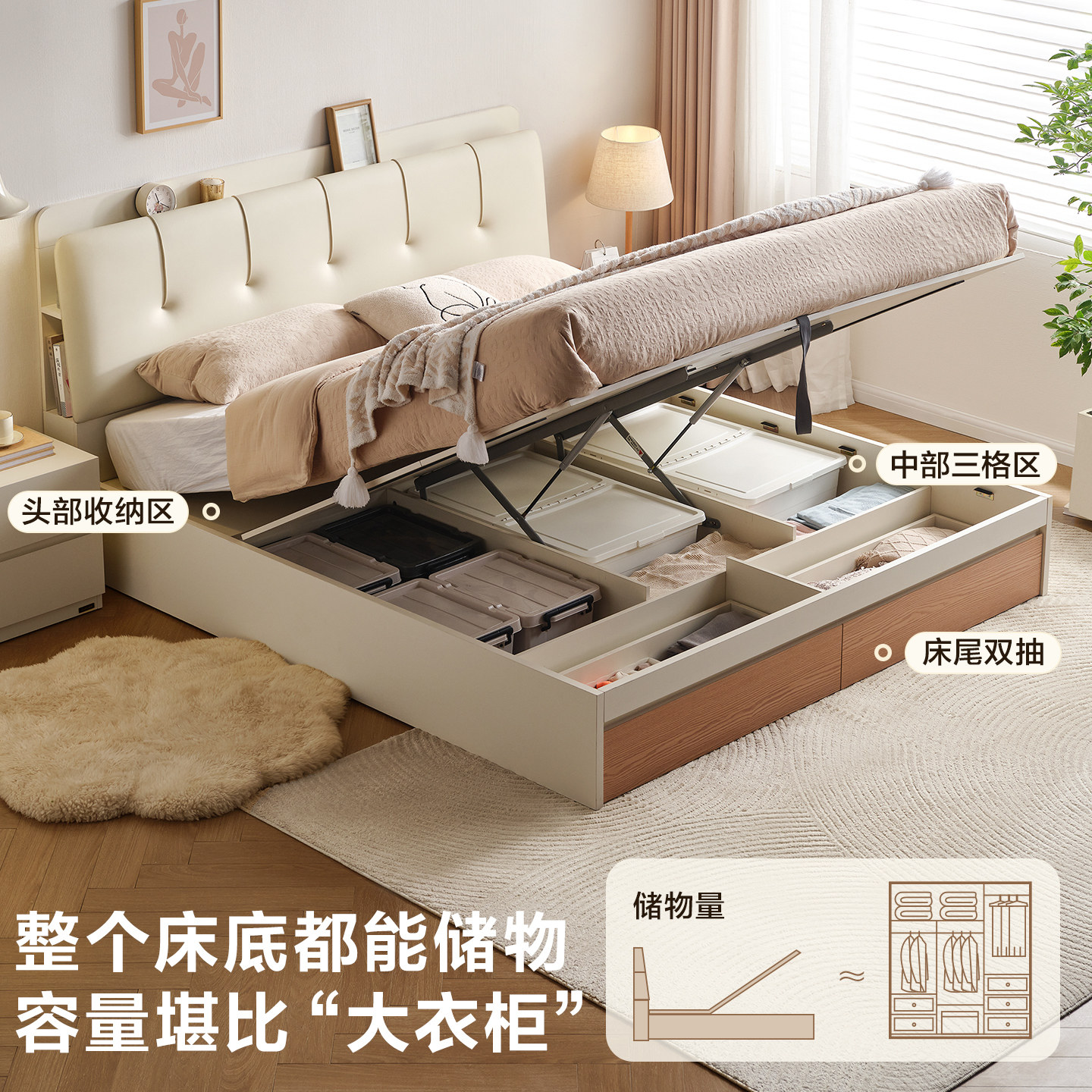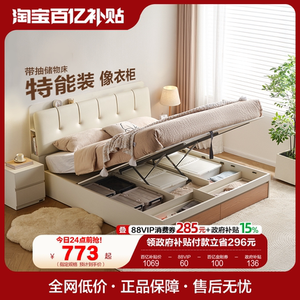 全友家居原木奶油风琴键储物床主卧双人落地软包皮艺床2025新款