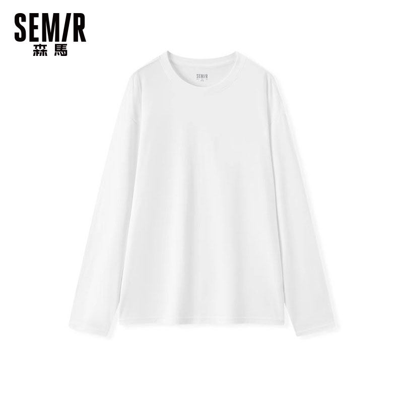 森马长袖T恤男2025春季新款纯色宽松上衣情侣纯棉内搭打底衫薄款