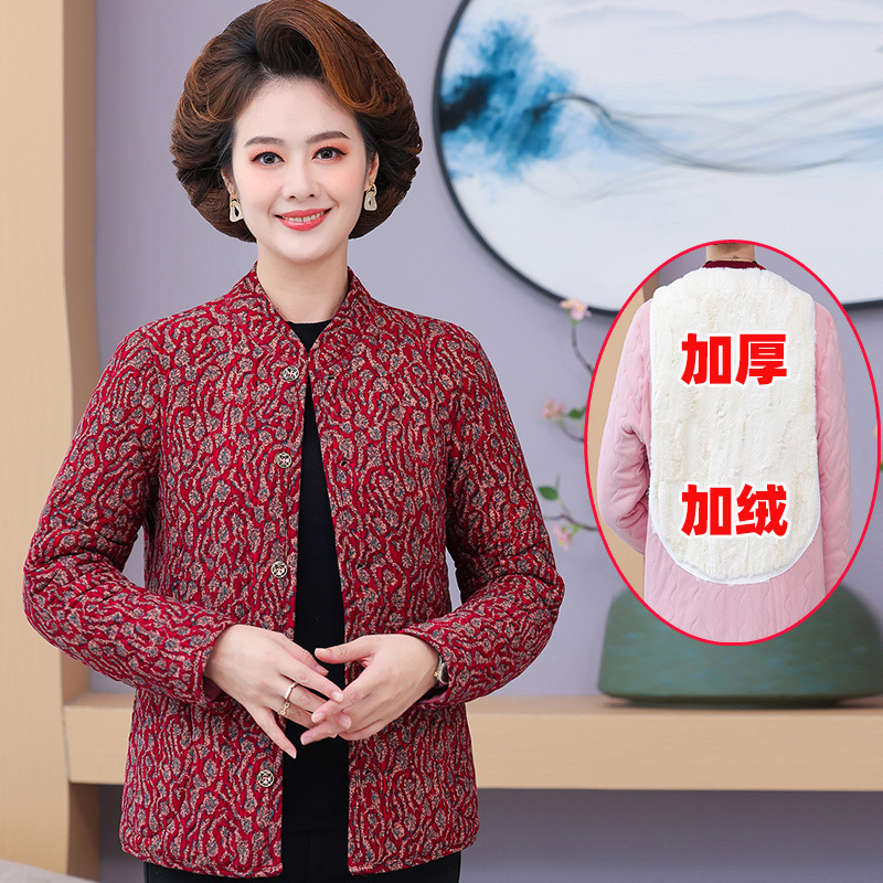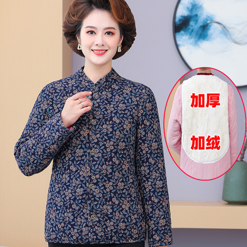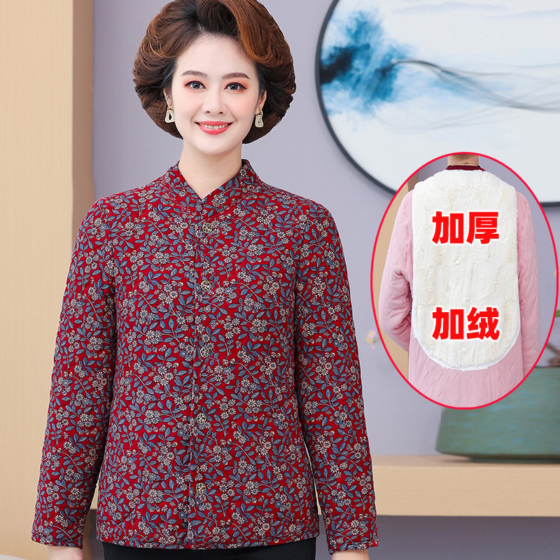 中老年女冬装内胆驼绒小棉衣妈妈秋冬保暖夹棉外套奶奶装印花棉服