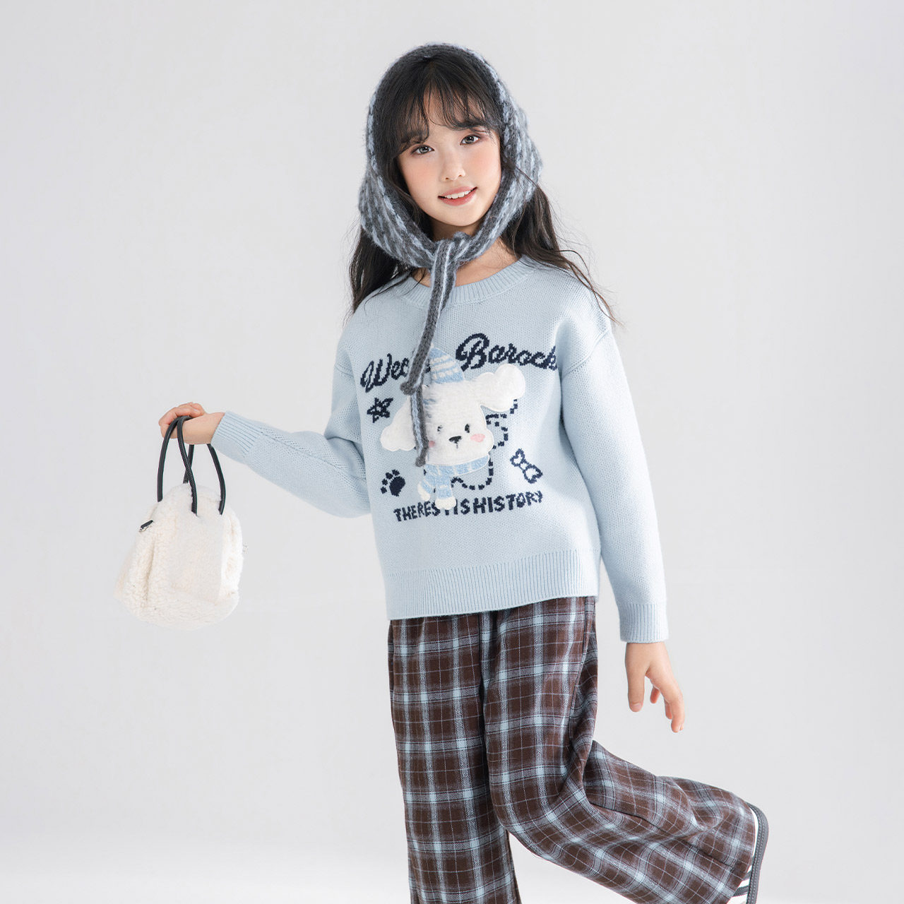 MINIIEF【爱依服童装】2025冬季新款韩版时尚印花女童毛织上衣