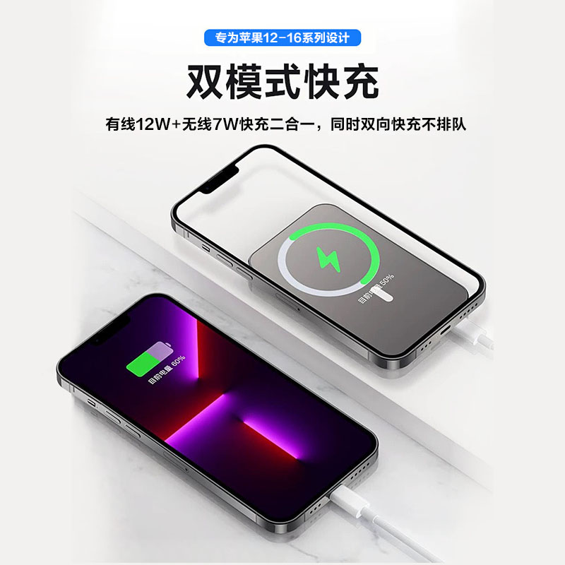 3C认证充电宝2025新款磁吸无线充电宝快充大容量10000毫安超薄小巧便携20W快充移动电源适用苹果16安卓新款