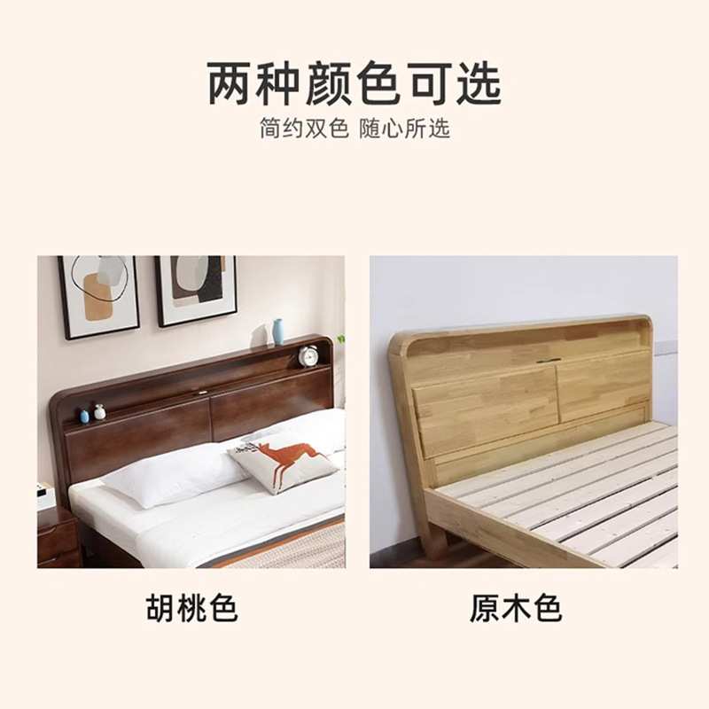 北欧实木床1.8米双人床现代简约原木家用小户型1.5米单人储物婚床