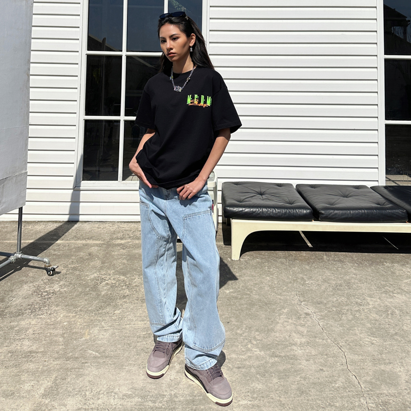MEDM夏季涂鸦字母印花短袖T恤男女同款美式高街复古休闲半袖体恤