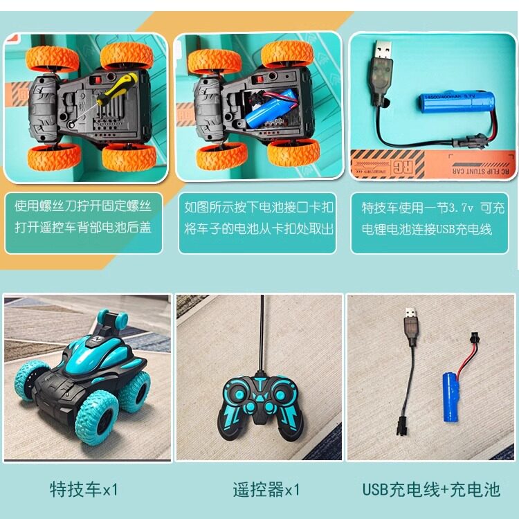 爆款儿童电动遥控车翻斗特技车大号无线遥控汽车翻滚旋转玩具炫酷