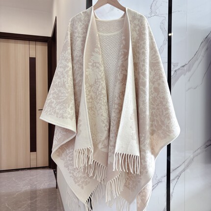 高品质孟姐走秀款金线羊绒提花披肩冬季保暖斗篷外套办公室外搭女