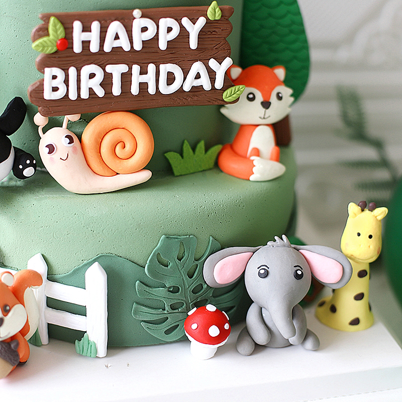森系蛋糕装饰森林小动物老虎狮子长颈鹿蛋糕插件宝宝生日装扮