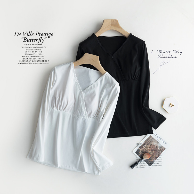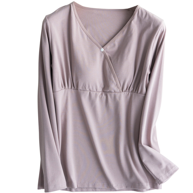 纯棉哺乳上衣秋衣孕妇喂奶睡衣春秋打底月子服外出带胸垫保暖内衣