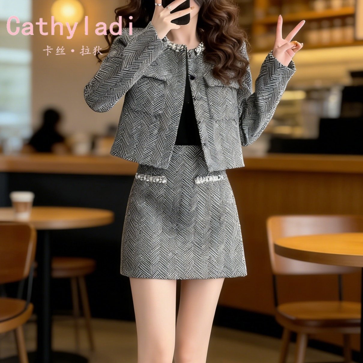 CATHYLADI高级感小香风名媛套装2026年冬季法式外套半身裙两件套