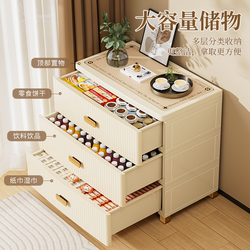 Jeko抽屉式收纳柜床头柜储物箱免安装零食置物架玄关夹缝五斗柜子