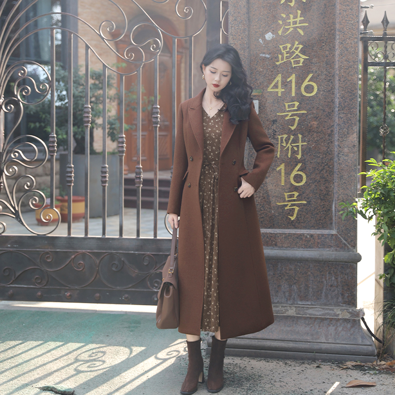 重磅上线~法式复古收腰显瘦双排扣翻领中长款保暖羊毛外套女大衣