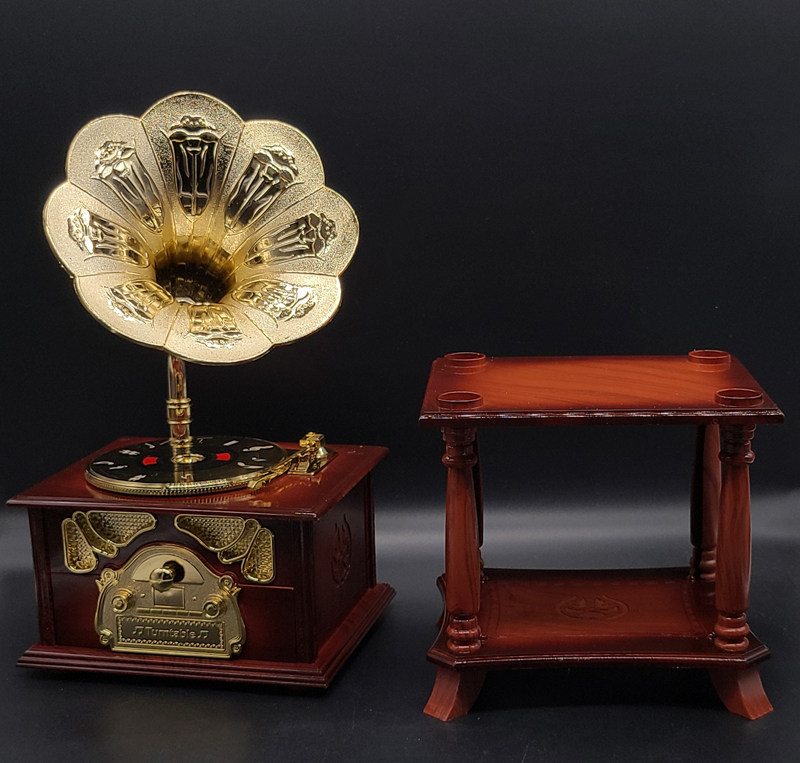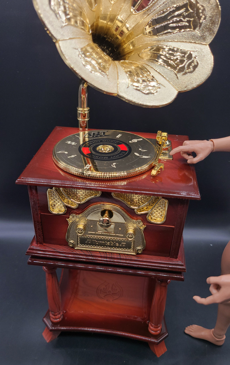 1/6分兵人场景配件复古老式留声机娃屋微缩家具bjd唱片机模型道具