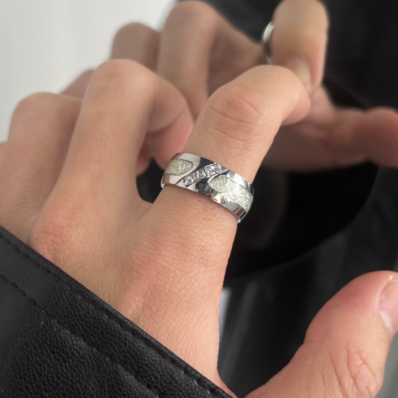 镶钻银丝雾凇钛钢戒指男潮女小众设计感尾戒轻奢高级情侣男士指环