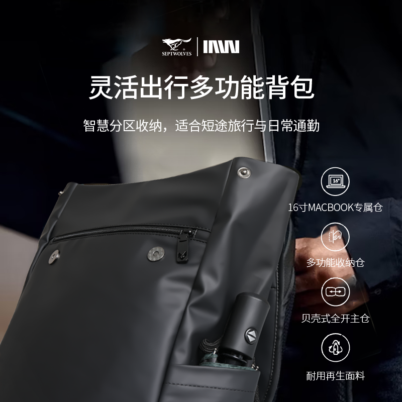 七匹狼双肩包男士背包电脑包15.6英寸笔记本休闲商务旅行学生书包