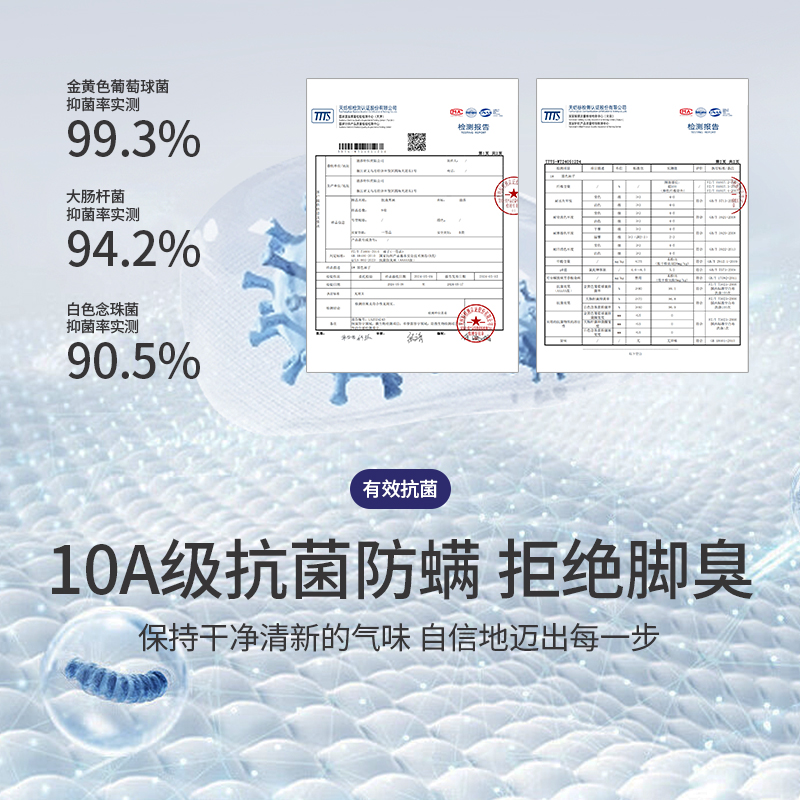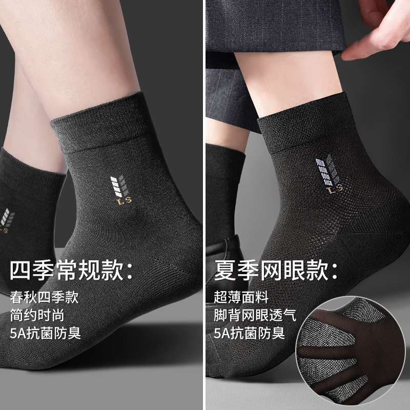 浪莎100%纯棉抗菌防臭男中筒袜子