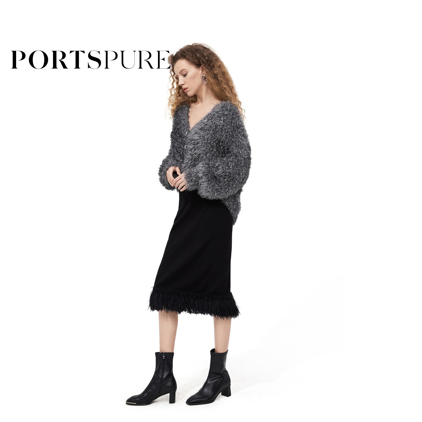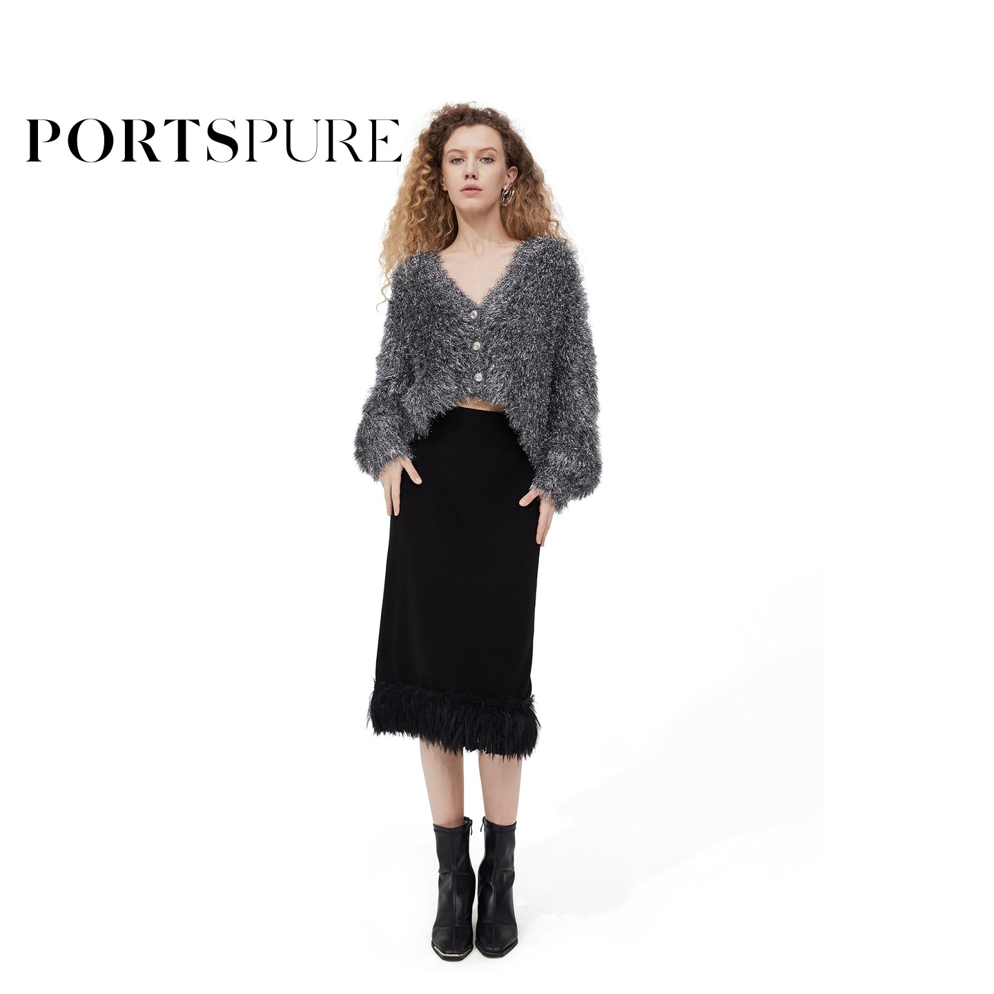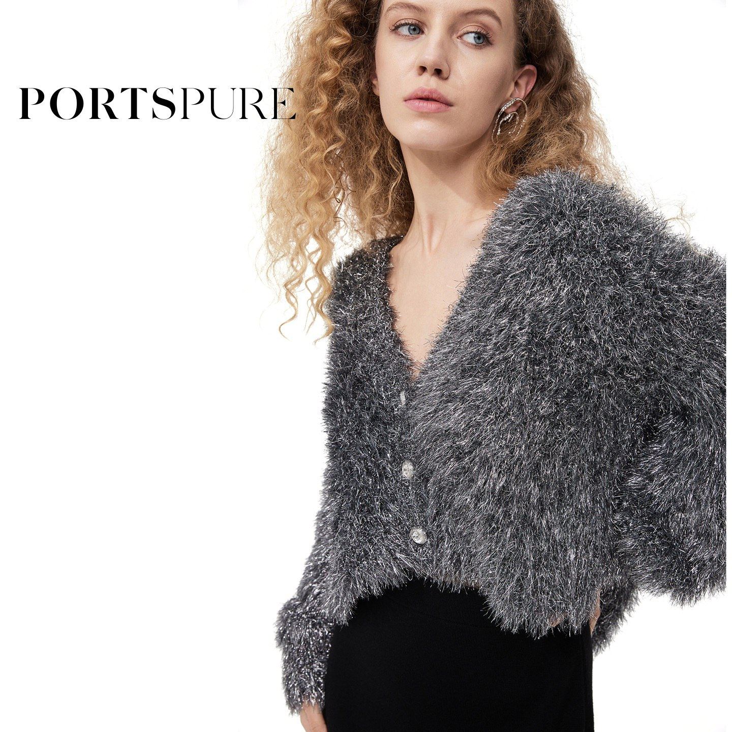 【博主同款】宝姿PORTSPURE女装秋冬精致优雅金银丝皮草针织开衫