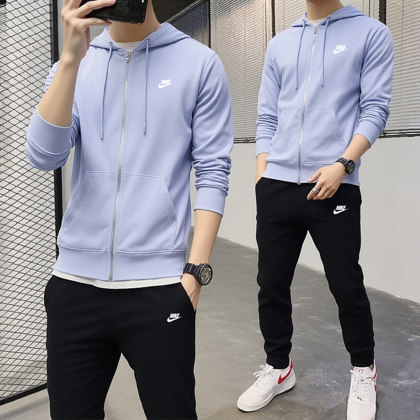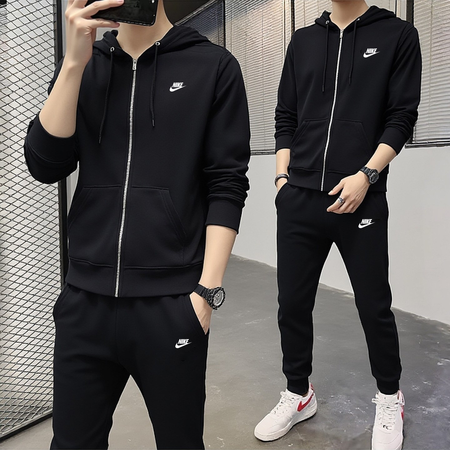耐克套装男nike针织外套裤子官方正品春季新款连帽夹克长裤FN3885