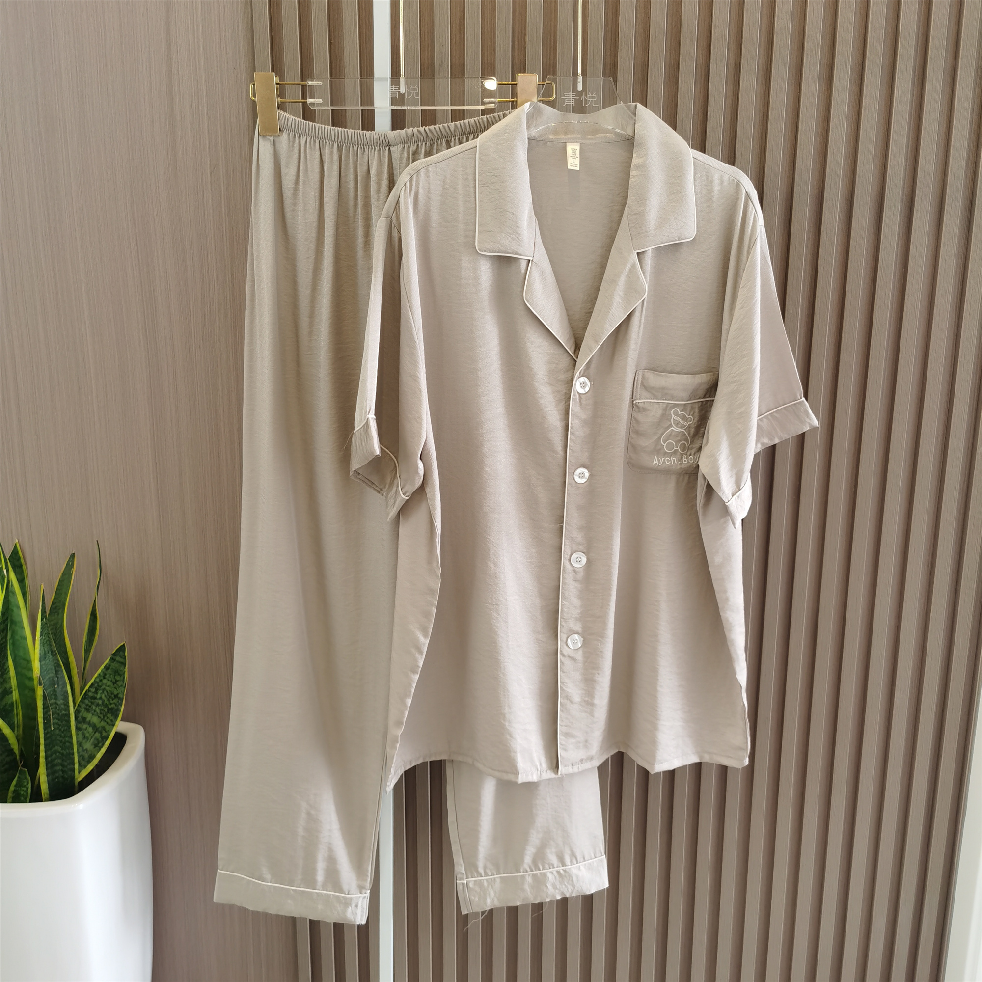 男款家居服天丝棉情侣睡衣女夏季新款短袖长裤休闲简约可外穿套装