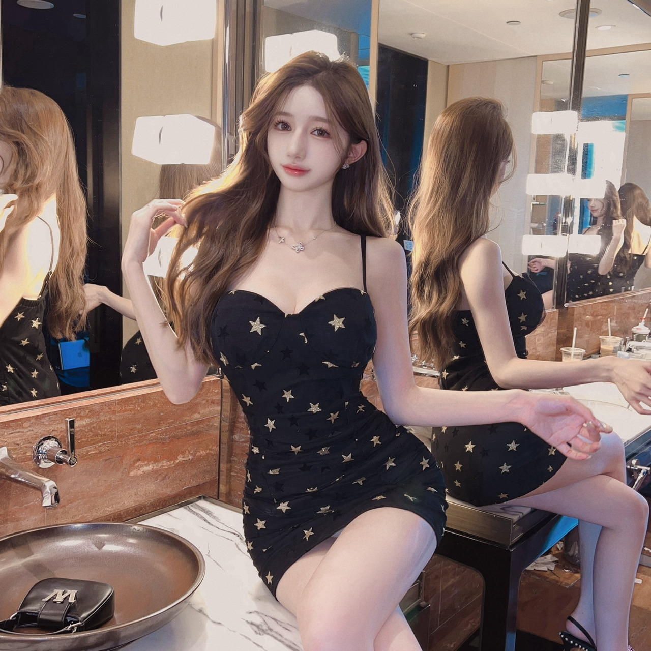 性感夜场女装露背褶皱显瘦紧身吊带连衣裙夏季打底修身包臀短裙子