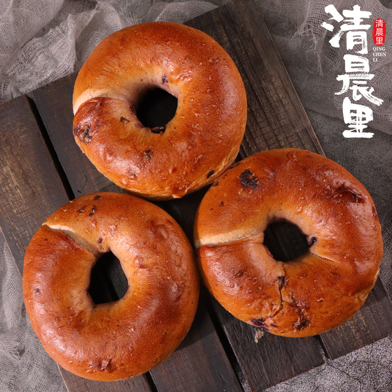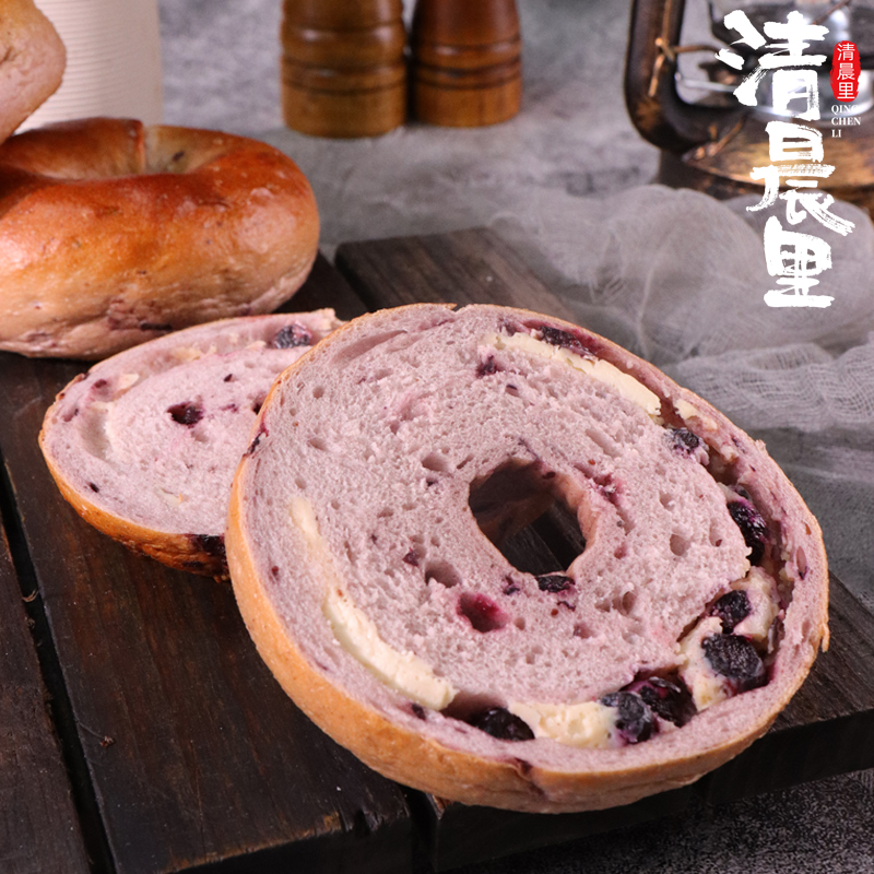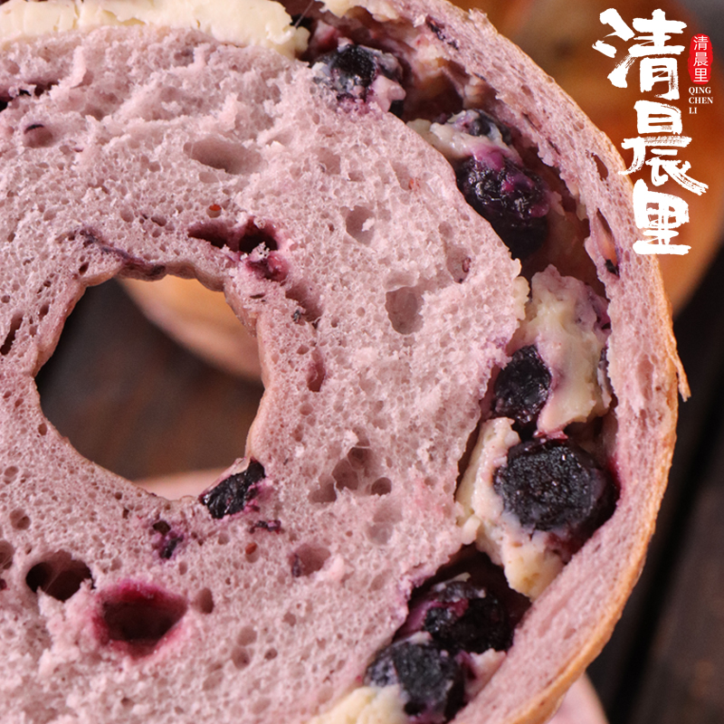 清晨里 蓝莓乳酪贝果面包早餐代餐无蔗糖三明治手作欧包轻食低脂