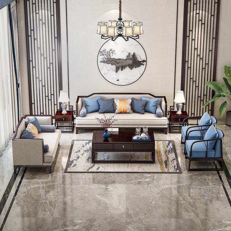 新中式实木沙发组合现代简约客厅别墅大小户型轻奢客厅成套家具厂