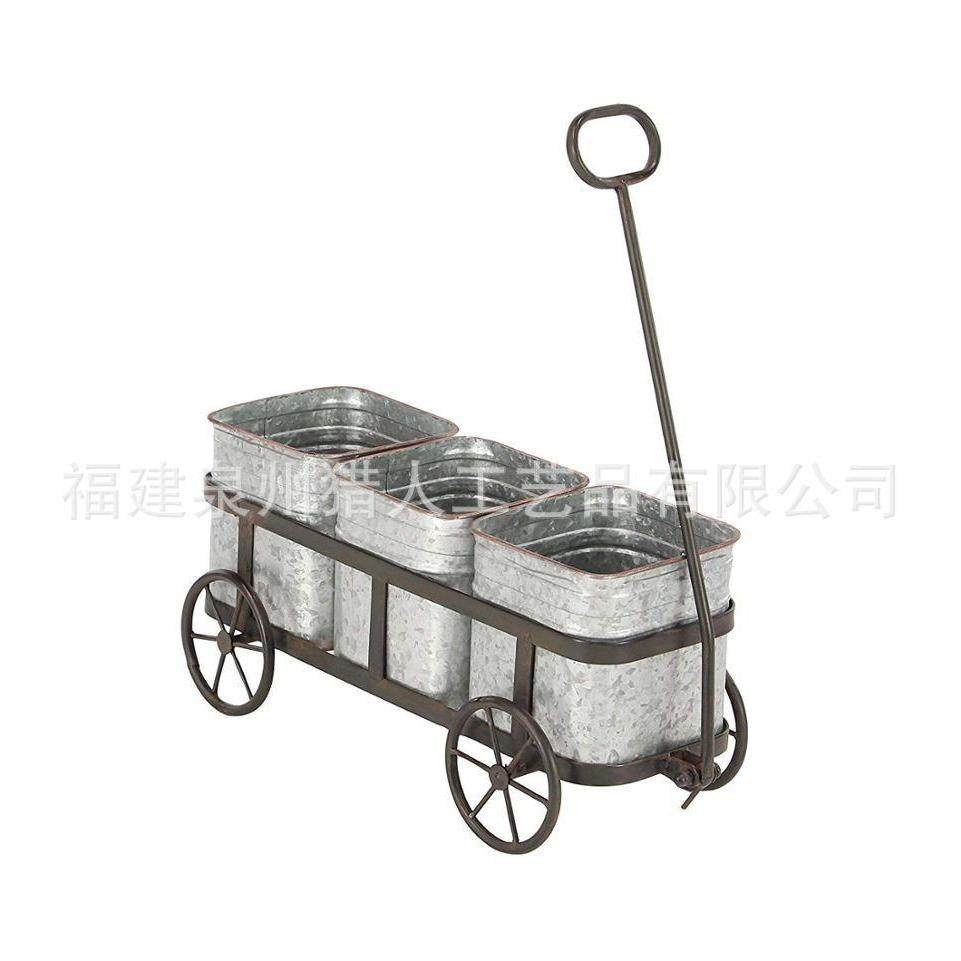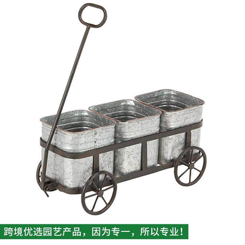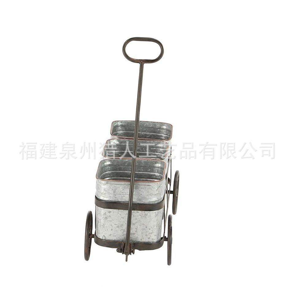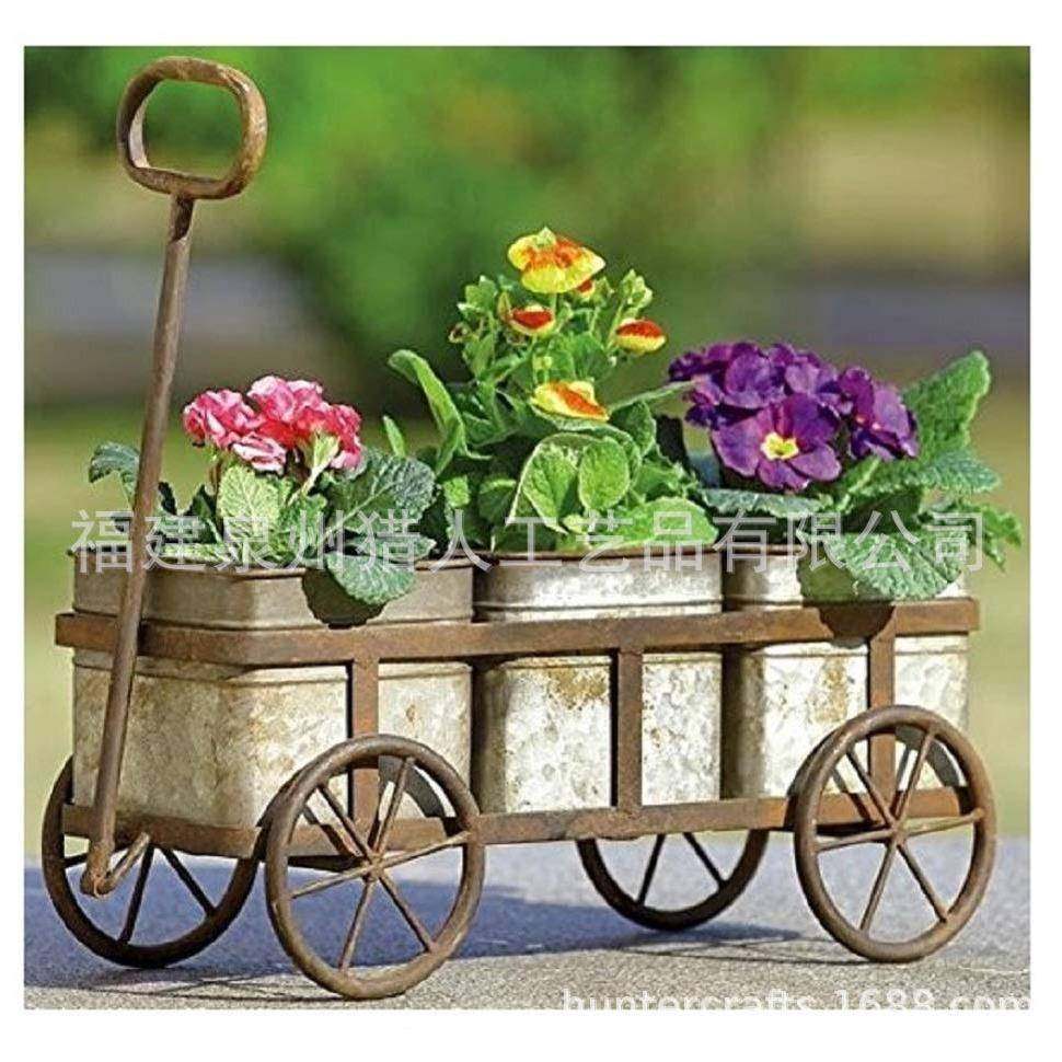乡村复风可爱四轮花小推车XY-425铁艺花架户花园带铁镀古锌外花盆