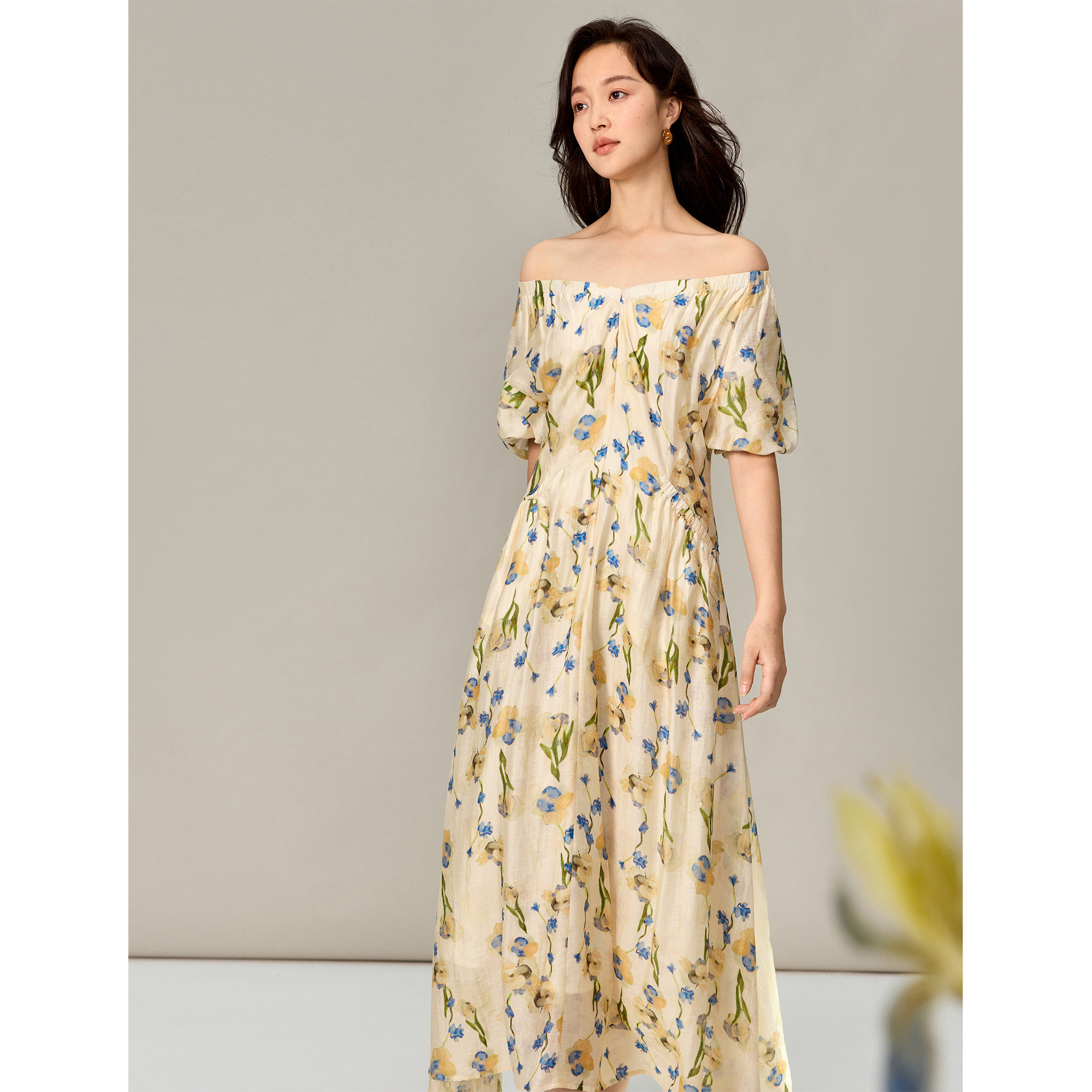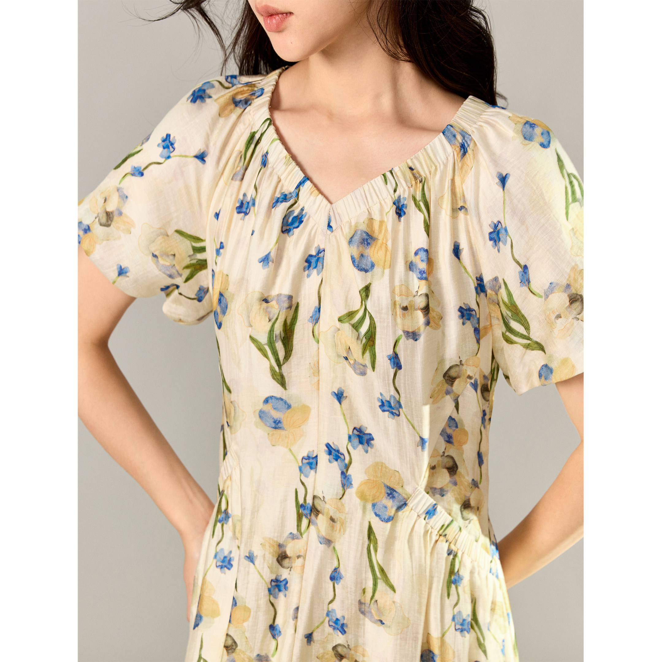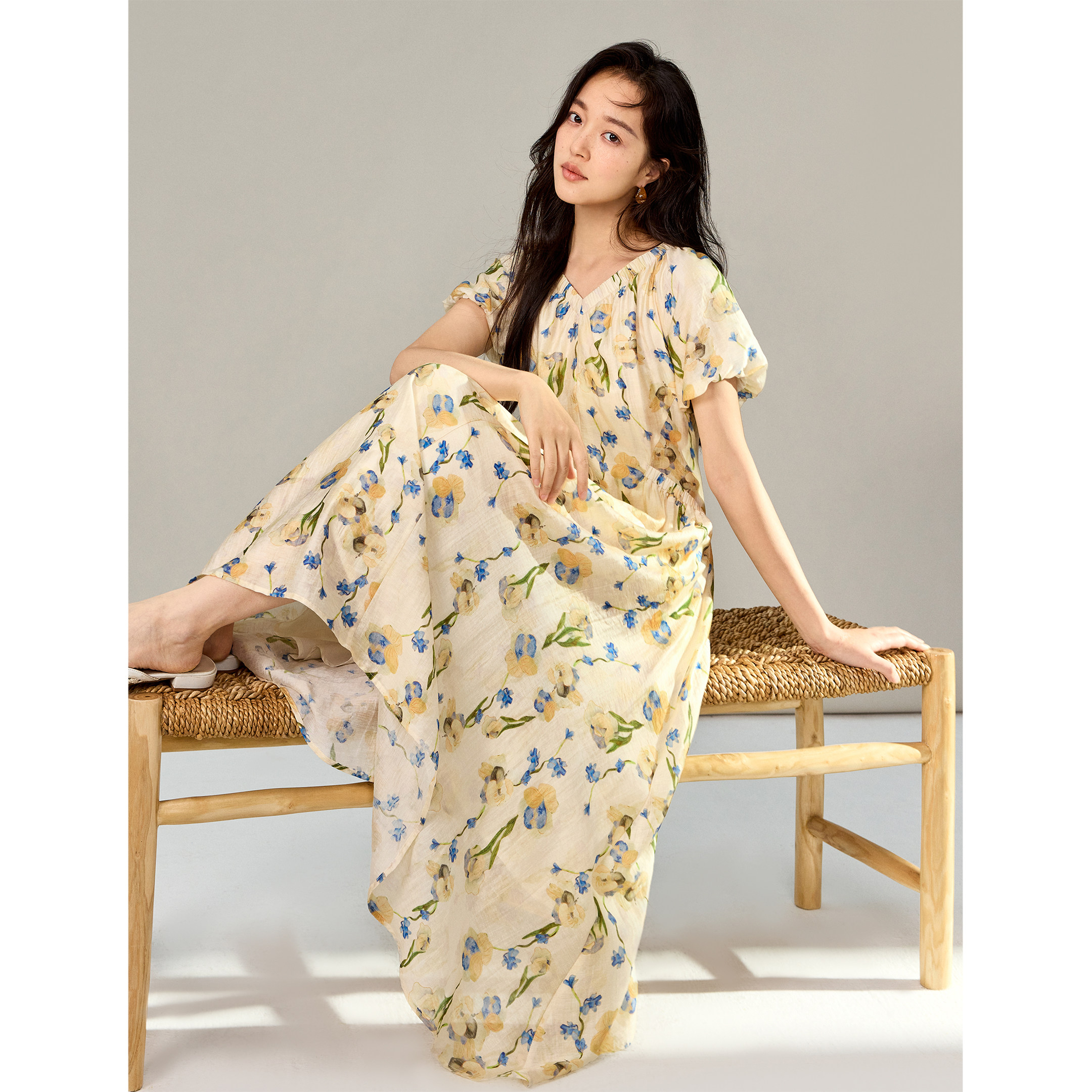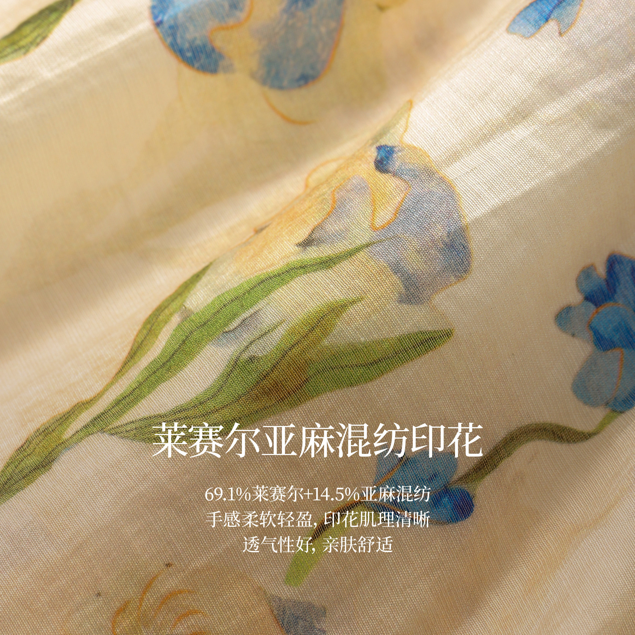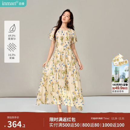 茵曼莱赛尔亚麻碎花法式连衣裙2026春季女装新款度假风显瘦裙子