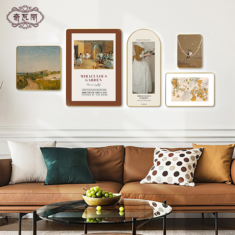 美式复古客厅装饰画小众艺术组合法式挂画现代轻奢沙发背景墙壁画