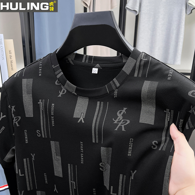 圆领薄款短袖T恤男士中青年休闲潮流夏季凉感碎花亲肤体恤男装