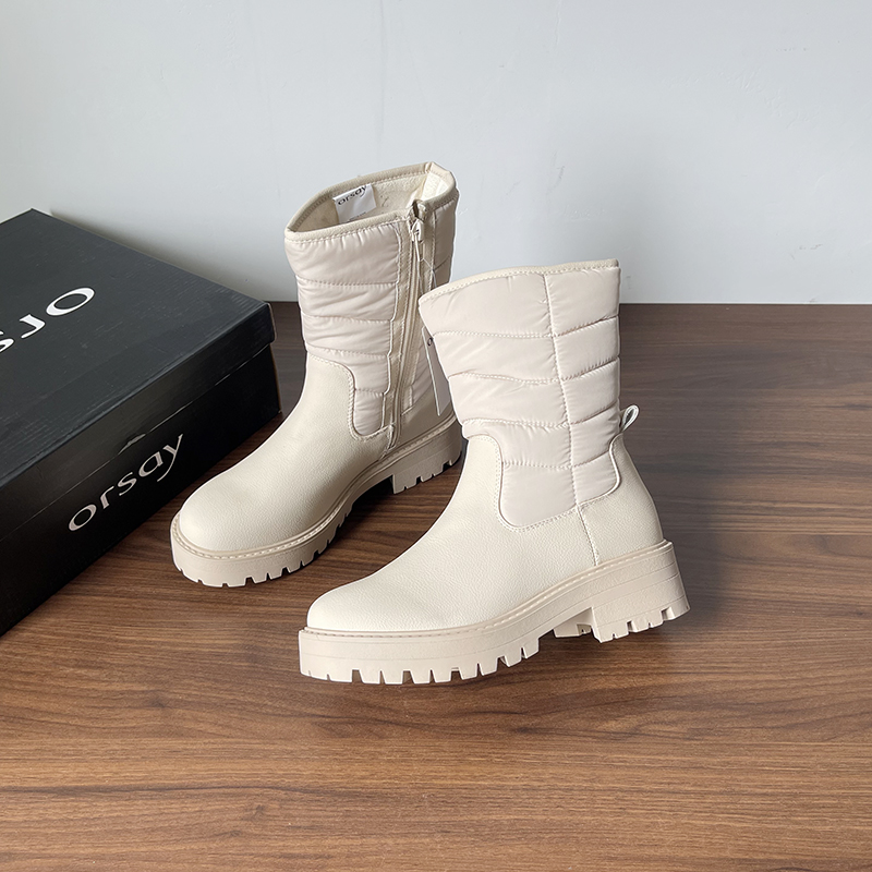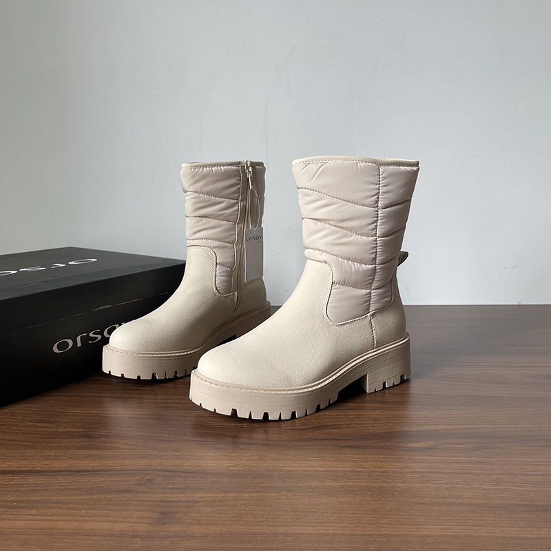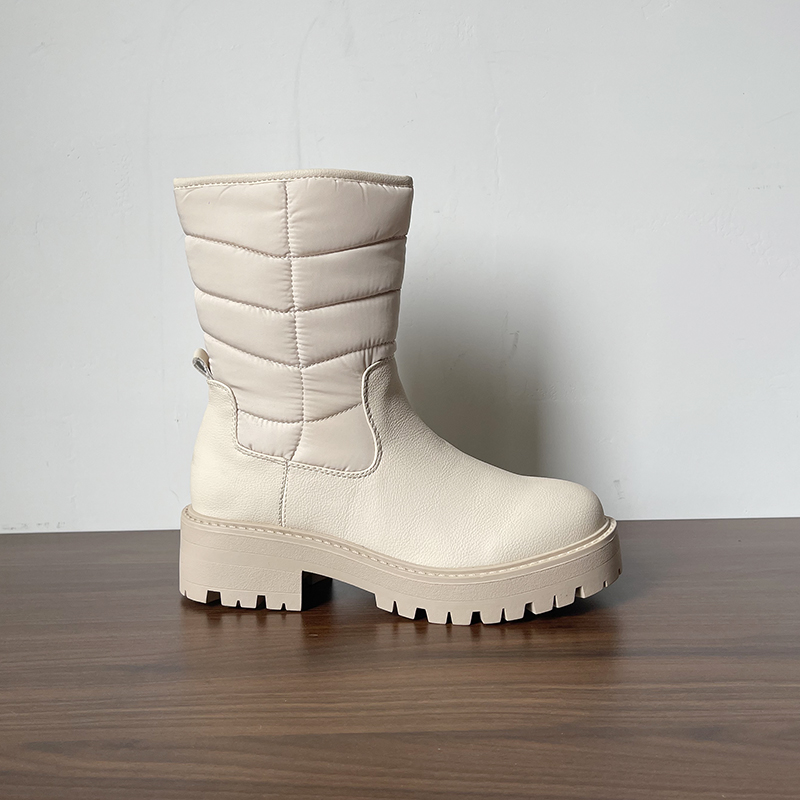 欧美大码防水厚底短靴2025秋冬新款平底米色马丁靴骑士女靴中筒靴