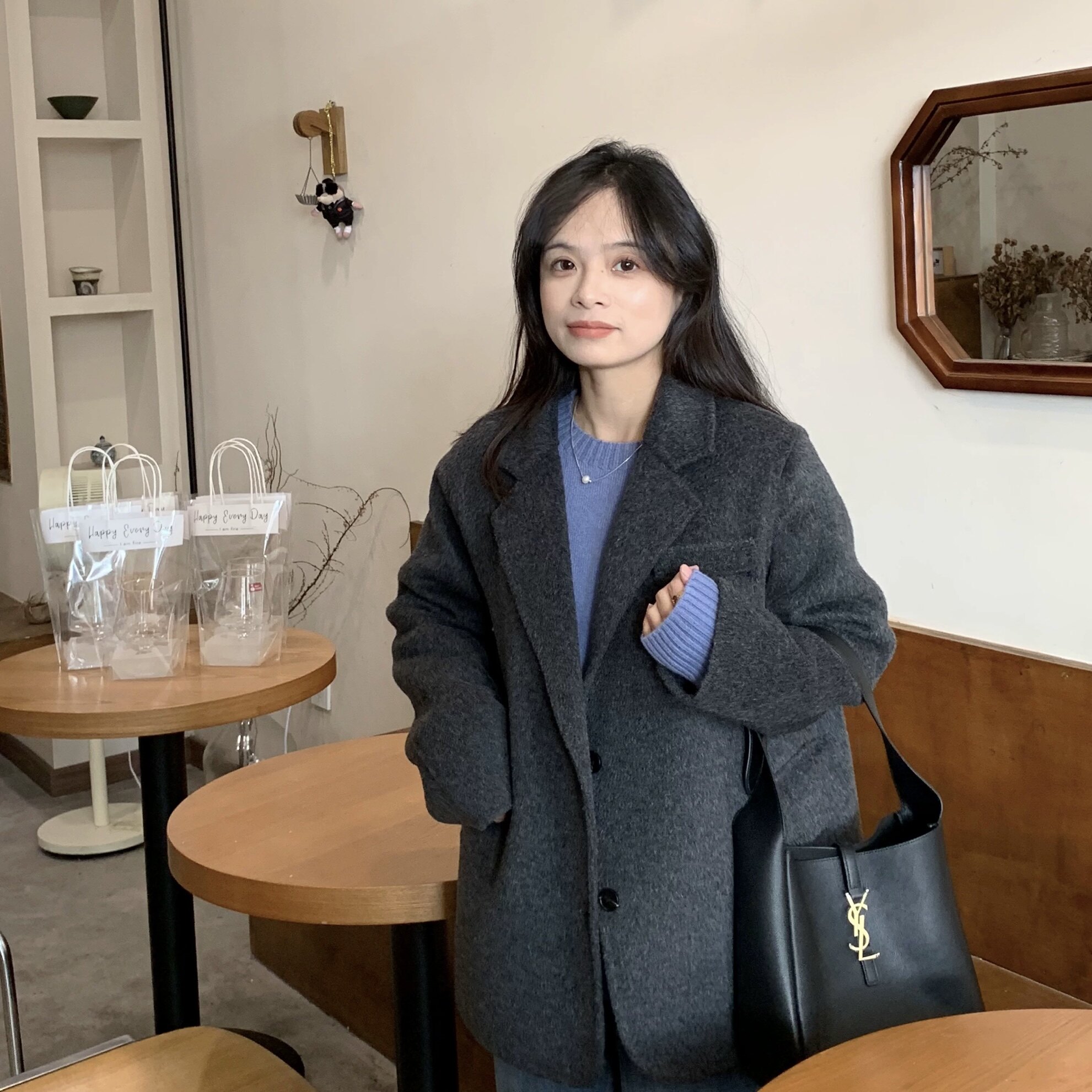 PERRY自制小个子100正肩全羊毛小码西装百搭中长外套小码150xxs