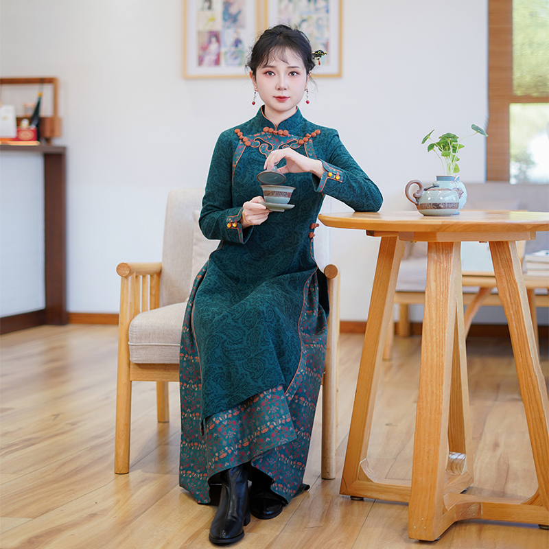 如意风国风新中式连衣裙修身收腰新款漂亮长款奥黛改良旗袍25R712