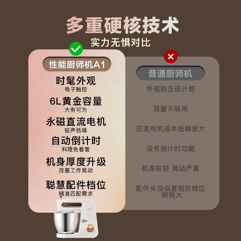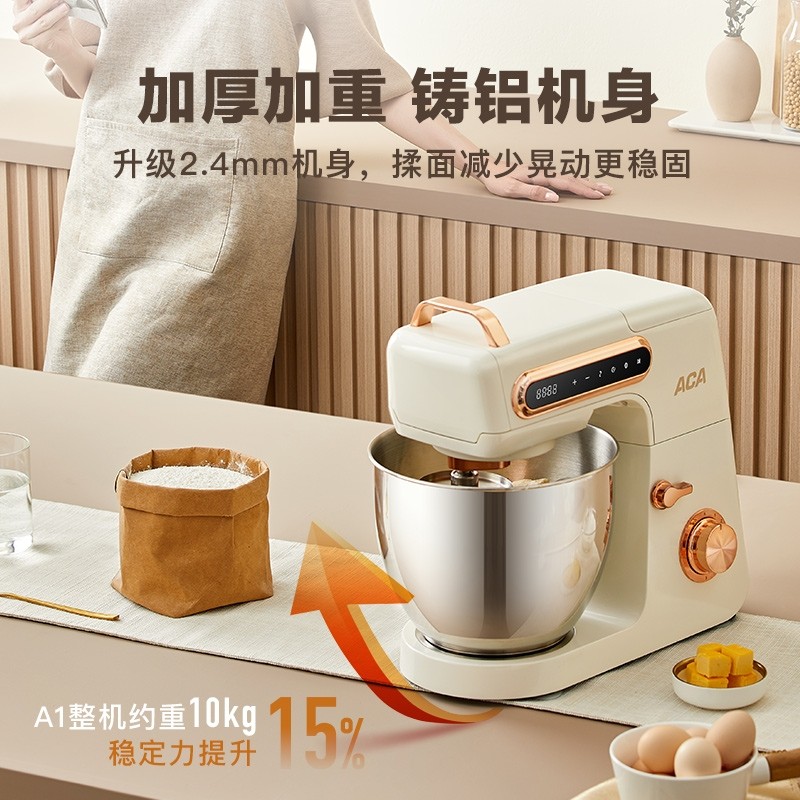 ACA北美电器A1厨师机家用全自动和面机揉面商用鲜奶油机6升搅拌机