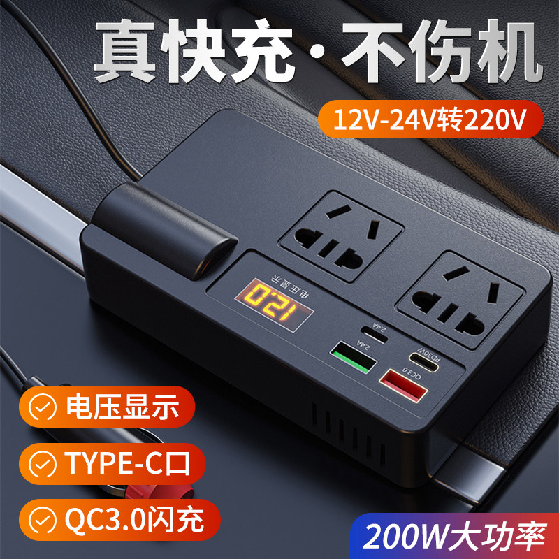 车载逆变器12V24V通用转220V大功率智能汽车逆变转换器手机充电器