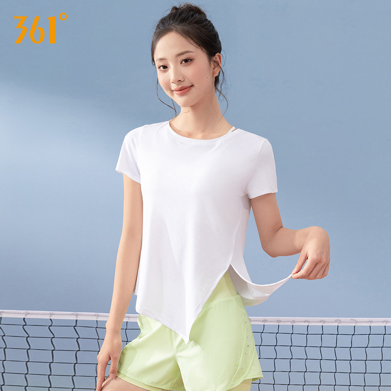 361运动罩衫女短袖绑带t恤外穿轻薄透气健身房绝美白色瑜伽服上衣