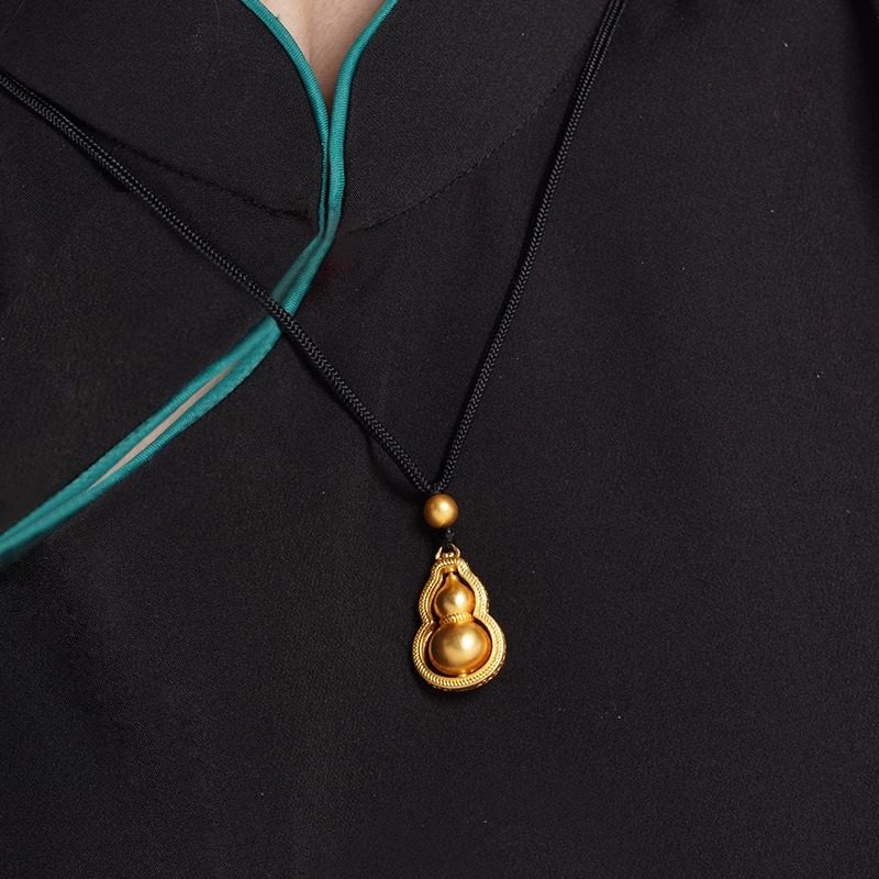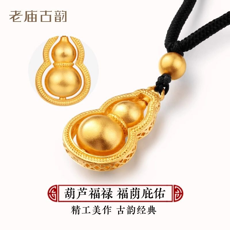 老庙黄金足金葫芦挂坠福禄葫芦金珠古法气质编绳挂坠男女情侣送礼